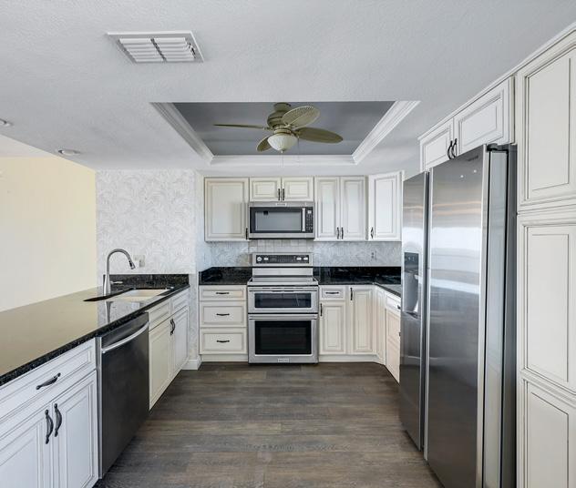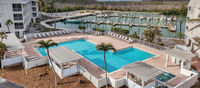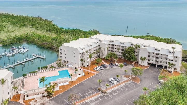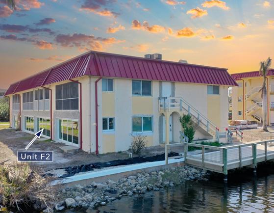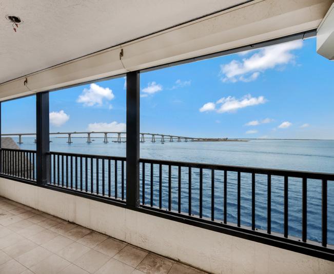 With 2nd floor entry & two levels of living space, enclosed balconies span each floor & have views of both bay & canal. Entry level has galley kitchen, 1/2 bath, laundry, & great room. Upper floor has 2 spacious bedrooms & 2 baths. Waterfront ameni�es include 2 pools, boat dockage, fishing pier, kayak/canoe launch, beach access, & more. 760 Sextant Dr, #713—$399,000 “as is”