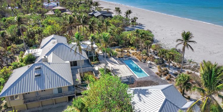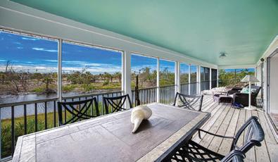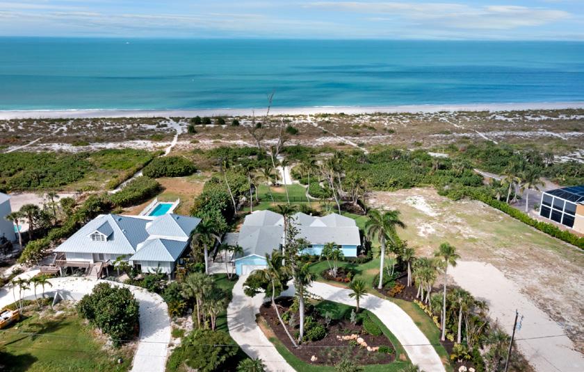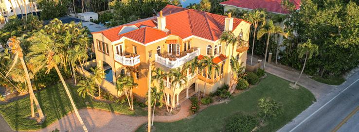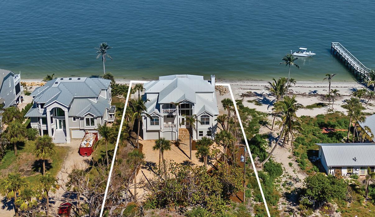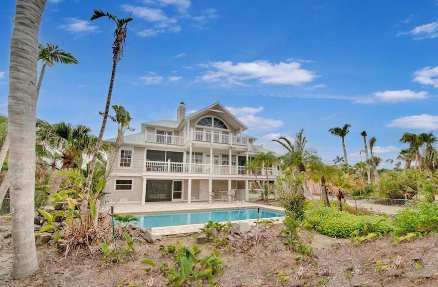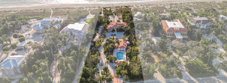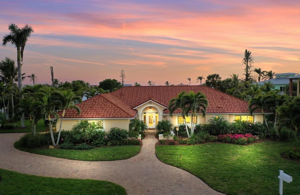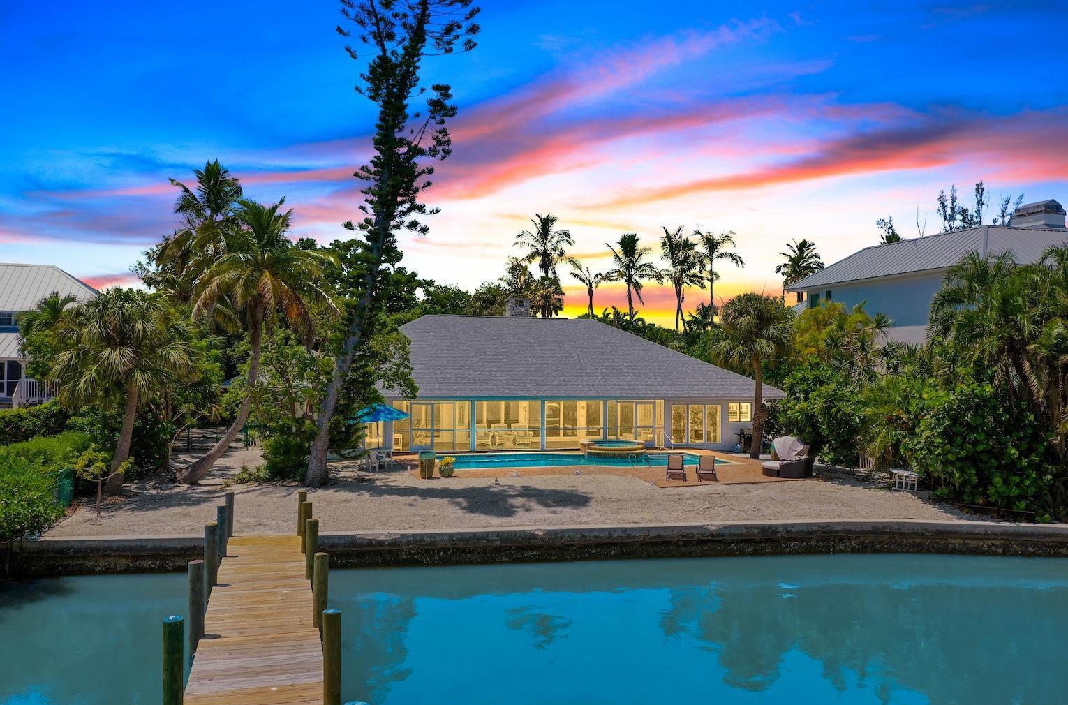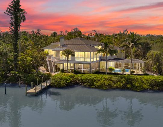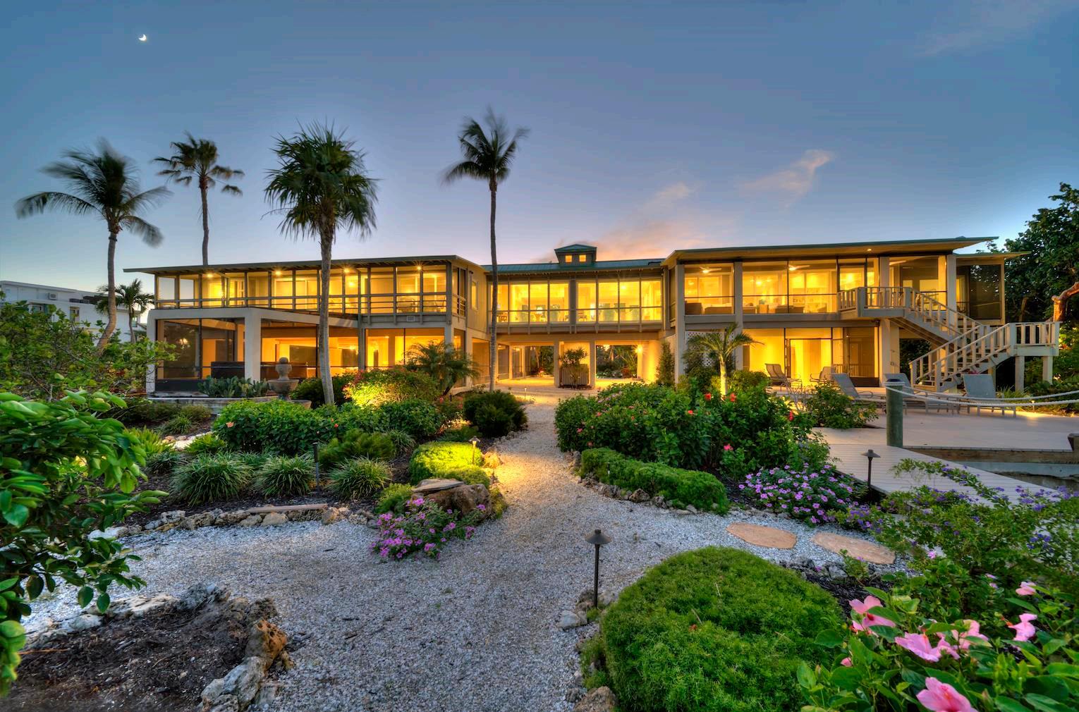 Six-bedroom-plus-den, five-and-a-half-bath estate home offering 100 feet of Gulf frontage. Centered around an open-air solarium with lap pool, casita-style guest suites, multiple decks, walking access to Roosevelt Channel and seamless indoor-outdoor living.