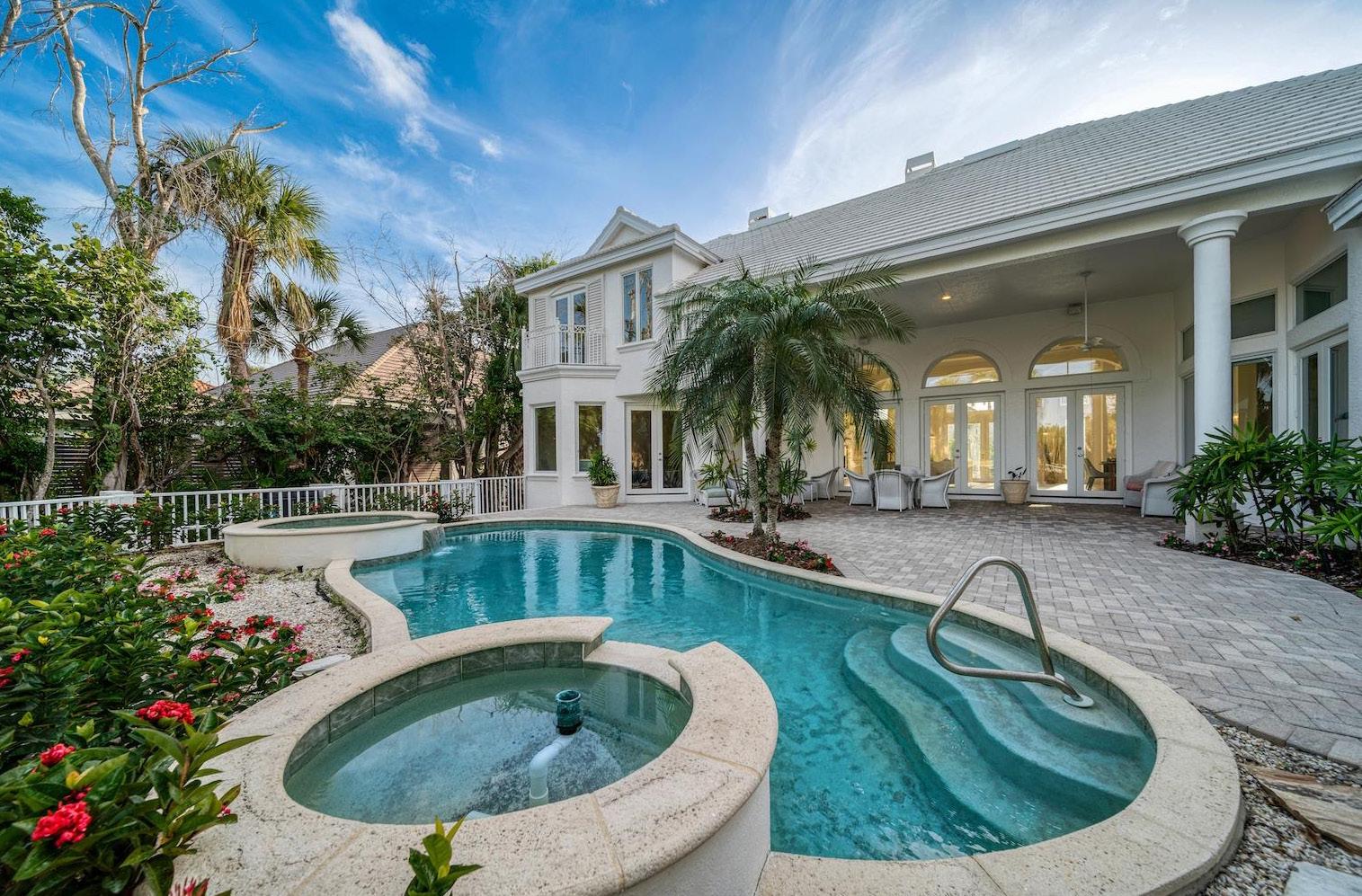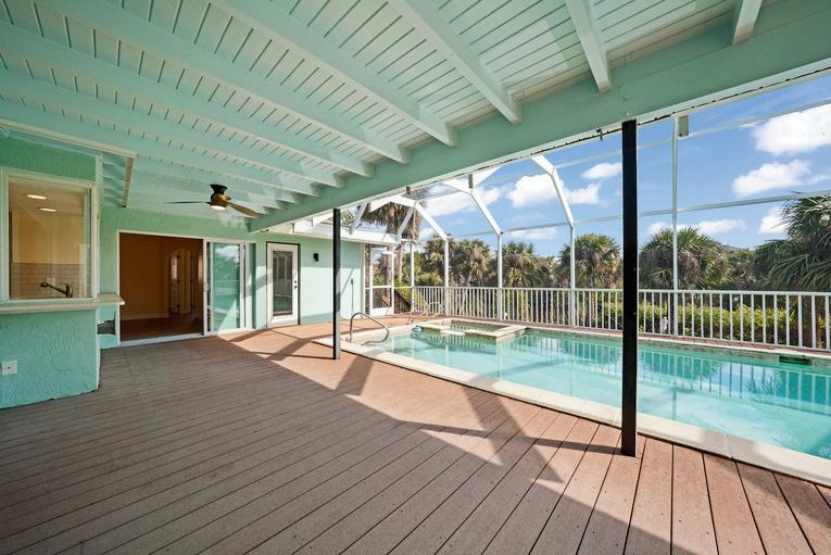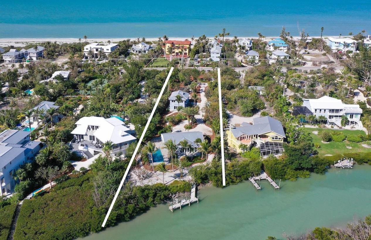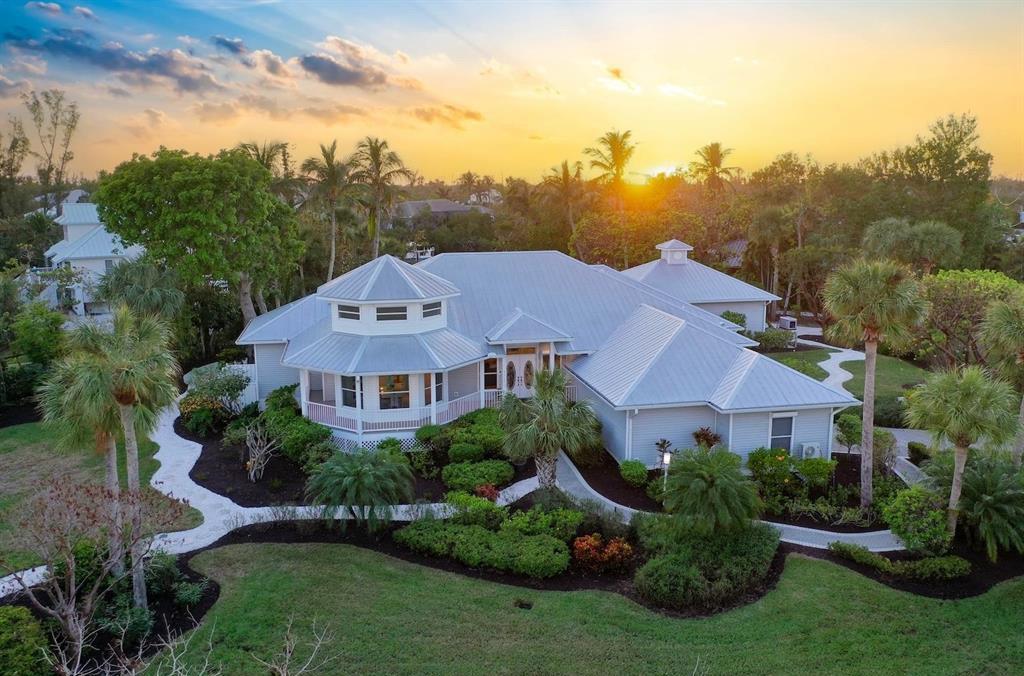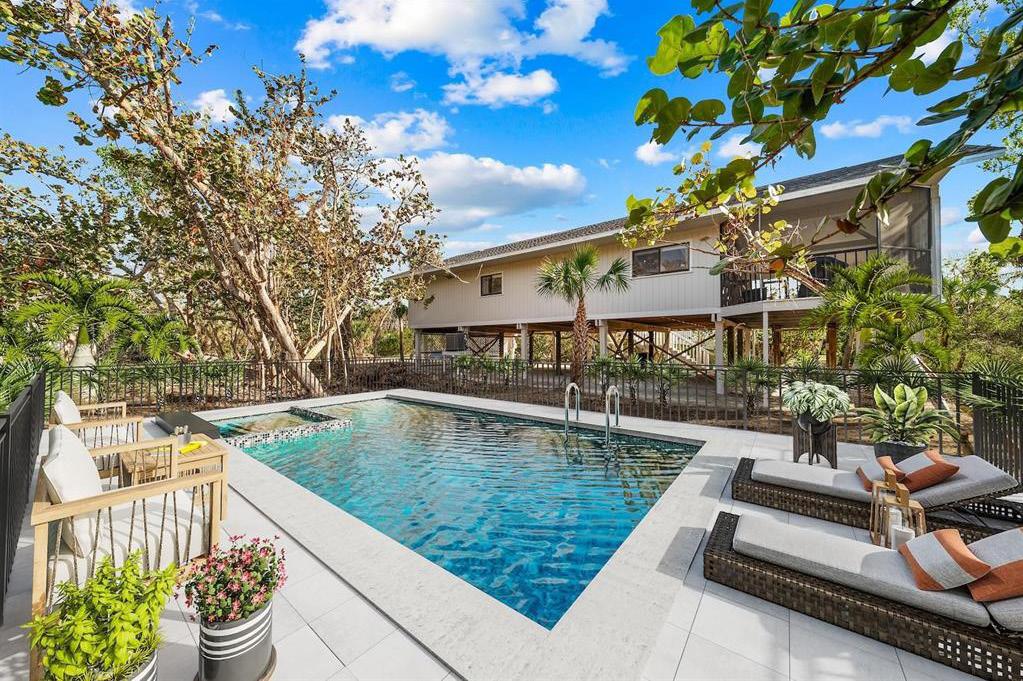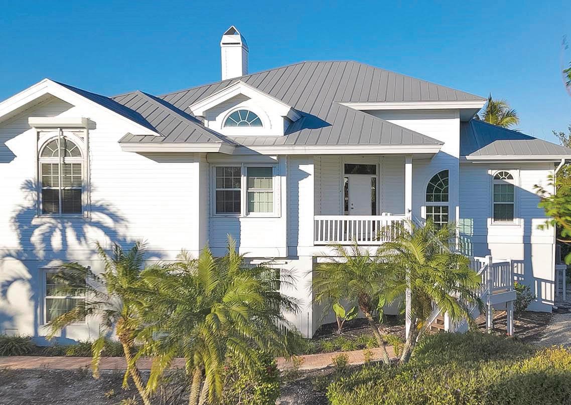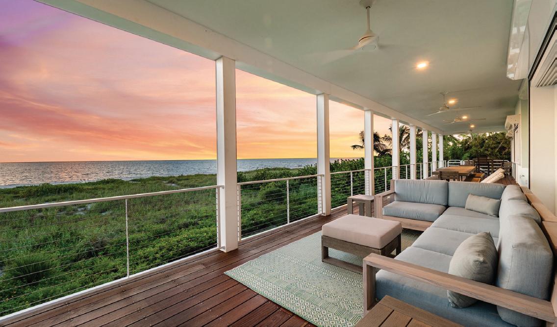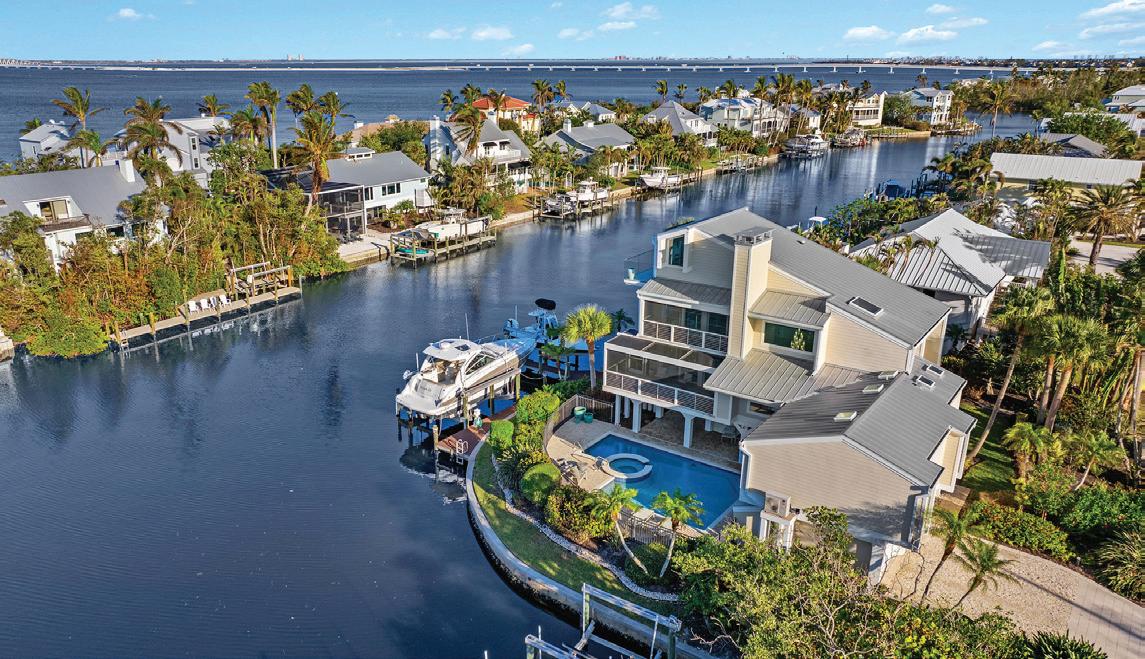 Six-bedroom-plus-den, five-and-a-half-bath estate home offering 100 feet of Gulf frontage. Centered around an open-air solarium with lap pool, casita-style guest suites, multiple decks, walking access to Roosevelt Channel and seamless indoor-outdoor living.