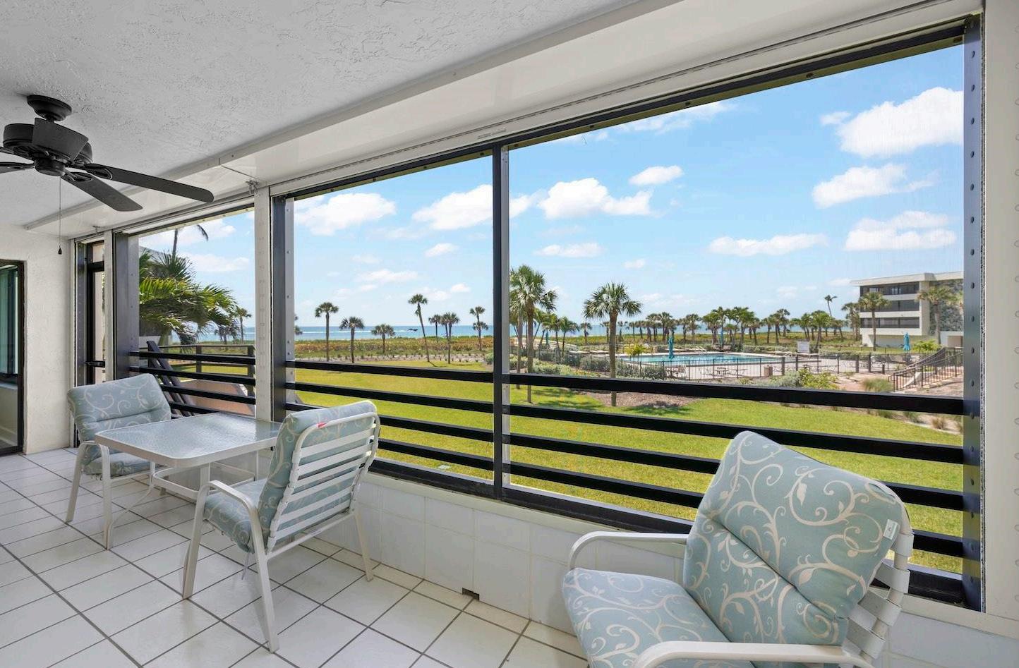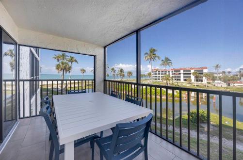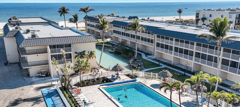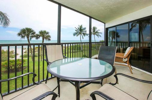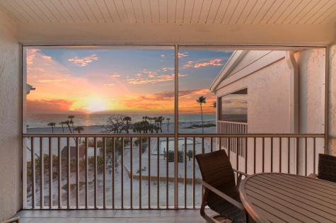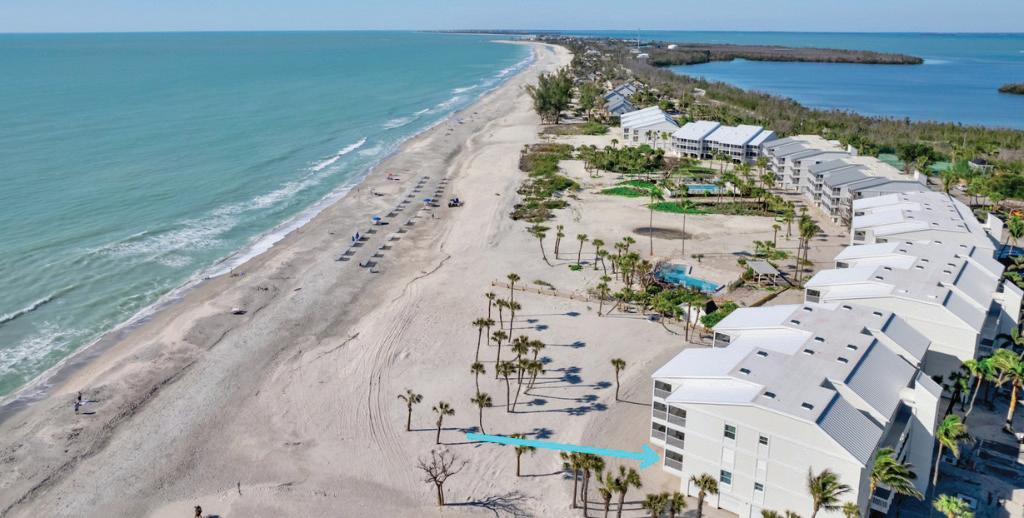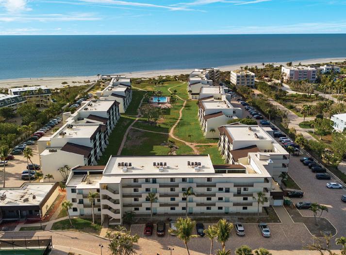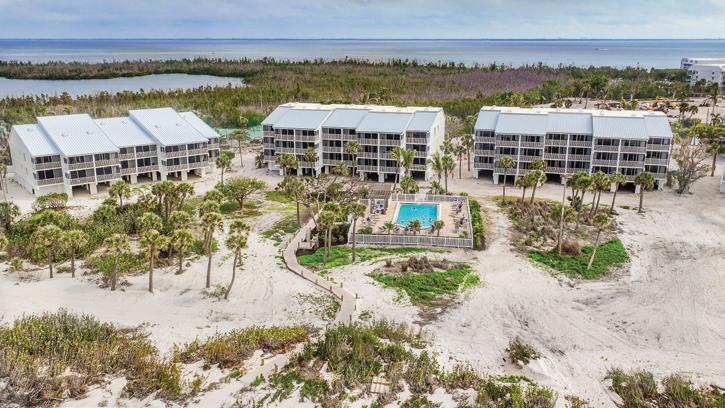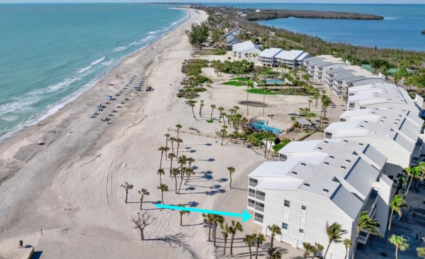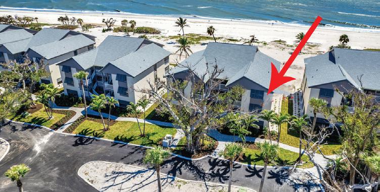 Gulf‐Front Income‐Producer at Shell Island Beach Club Built high in 1996 with covered parking below. Just four units in building, ensures units are light & bright. With beach‐facing screened balcony, stack washer/dryer, new HVAC, & coastal decor, this 2‐bedroom 2‐bath condo is steps to beach, pool, & bike path. Enrolled in weekly rental program & fully‐equipped. Future bookings can convey with sale. 255 Periwinkle Way, #7B—$925,000