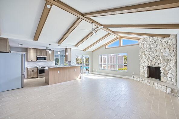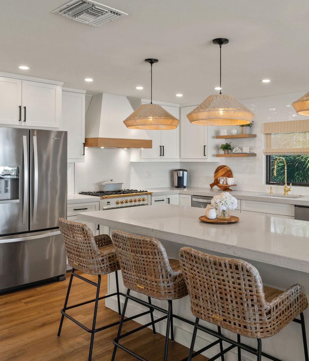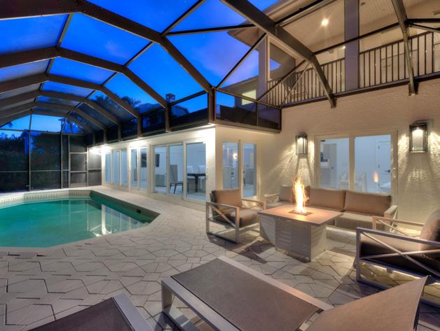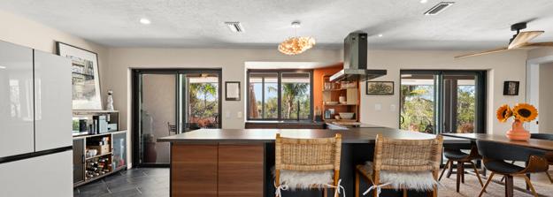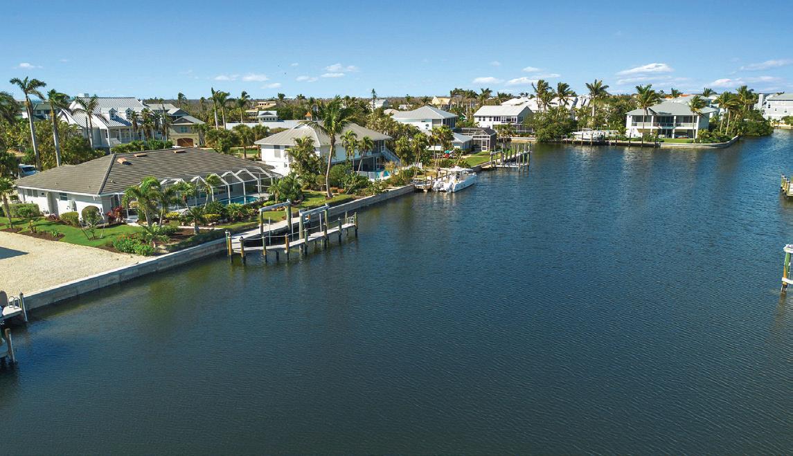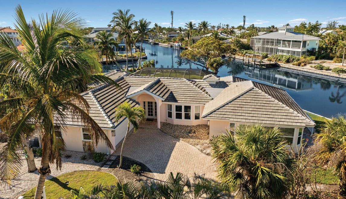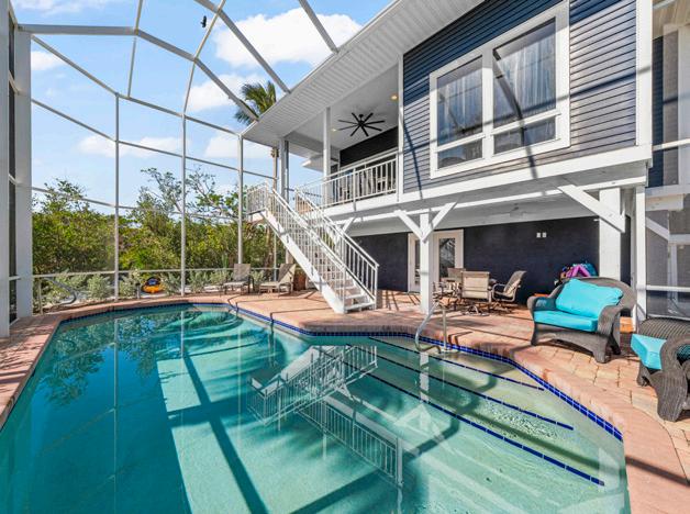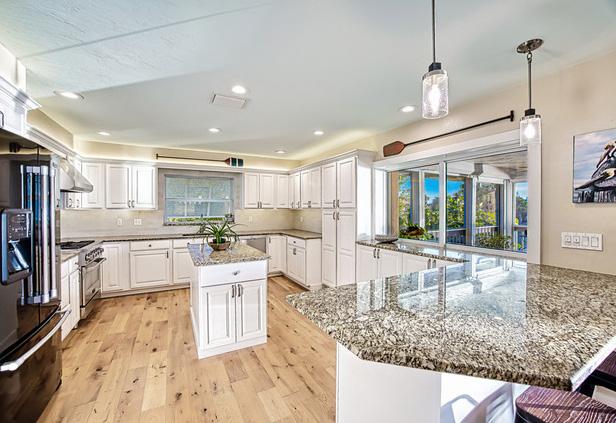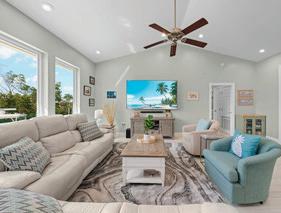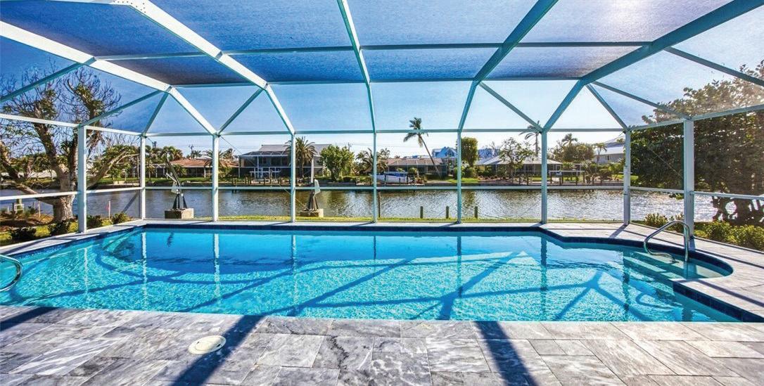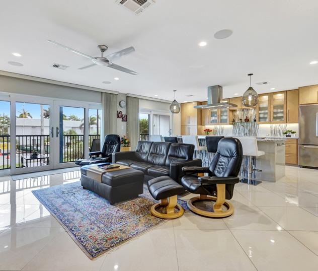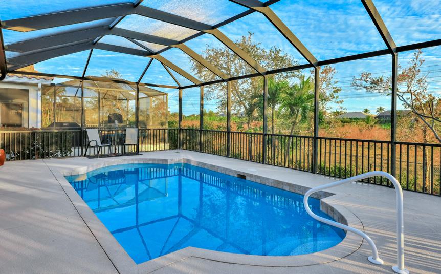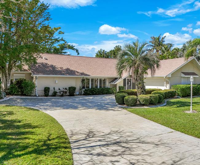 Remodeled Lakefront Cul‐de‐Sac Pool Home With One‐Level Living On high lot in Gumbo Limbo. Split‐plan 3‐bedroom 2‐bath design with separate living & dining or office areas, plus bright kitchen that open to spacious family room with water views on 3 sides, plus fireplace, built‐ins, & sliders to screened pool. Separate u�lity room, 2‐car garage, & exterior storeroom too. 9436 Yucca Ct—$1,095,000
