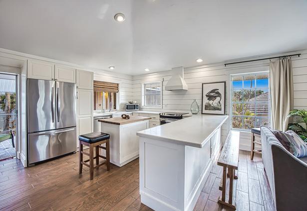In highly‐visible free‐standing building at 1640 Periwinkle Way. Minutes from causeway. Just five units in building with new roof, firewalls, & landscaping. #2 is 2nd in from Periwinkle with open parking. �1,200 sq. �. with new interior including easy‐access recep�on area, offices, 1/2 bath, & back door too. 1640 Periwinkle Way, #2—$399,000