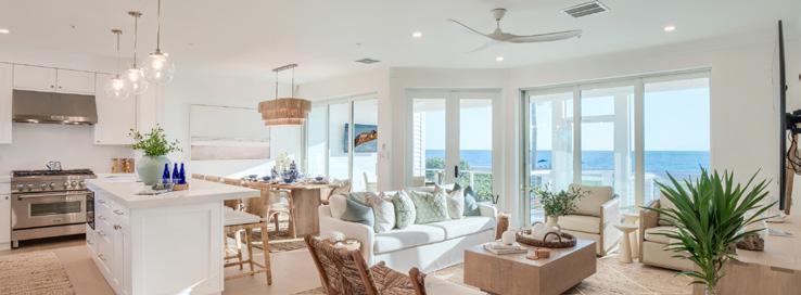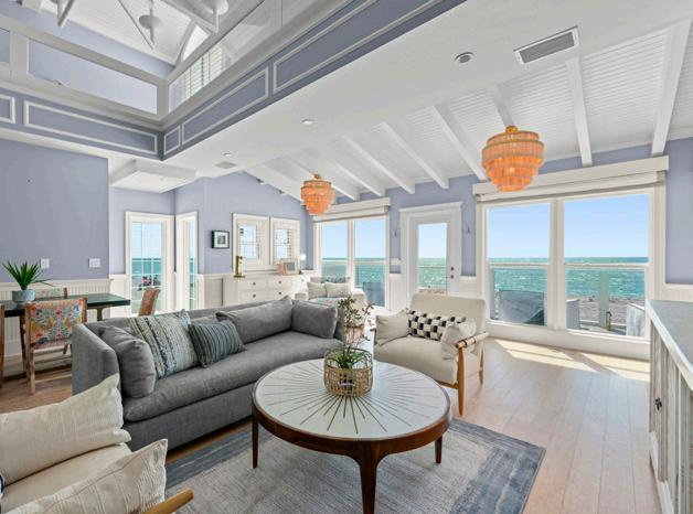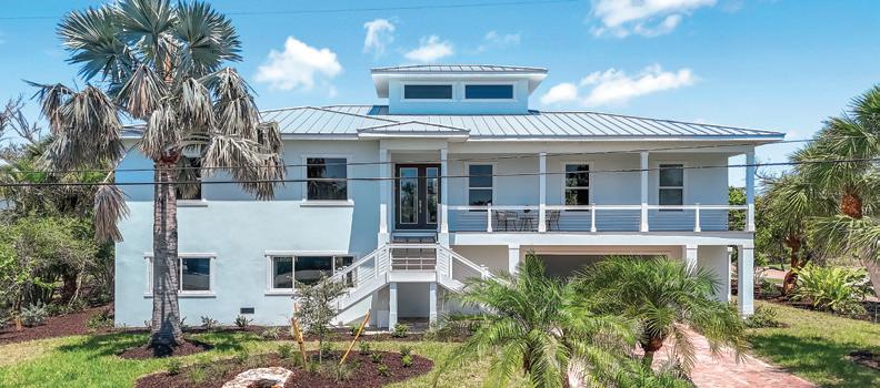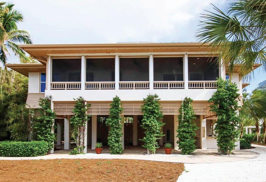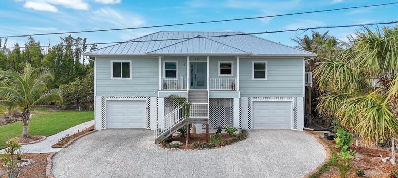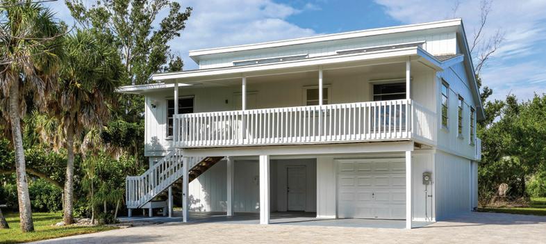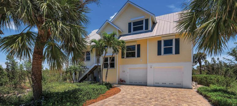 and wraparound verandas. Lots of natural light showcases the quality finishes throughout. 3 bedrooms, 2.5 bath, split bedrooms with spacious primary suite, plus laundry room, elevator & loft with 2 home o ces. Located in the Dunes with deeded beach access, & permitted for a future pool. Impact windows & doors, metal roof, & Hardi Board siding, Flood insurance available.