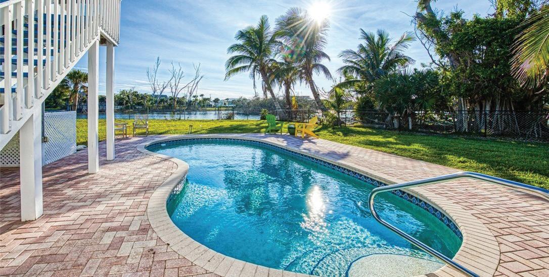 Three-bedroom, three-bath elevated home with spacious kitchen, private pool and serene views of the conservation area behind. Recent improvements include