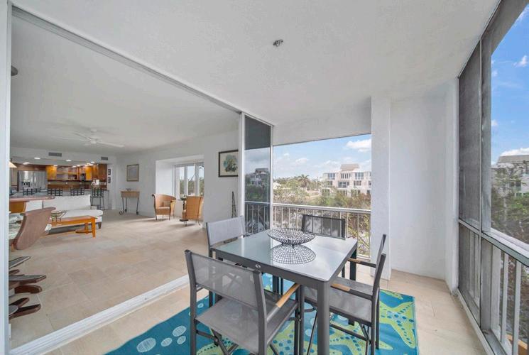 Roomy Top‐Floor Resort Condo in Sundial East With covered parking & private storeroom below, #R401 has �1,451 sq. �. under air or �1,672 coun�ng gulf‐view screened balcony. Remodeled 2‐bedroom plus den, 2‐bath plan. O�ering both courtyard protec�on & corner privacy. Handy to ameni�es including shops & dining. Fully‐equipped including washer/dryer & in rental program. 1401 Middle Gulf Dr, #R401—$1,190,000