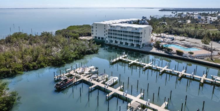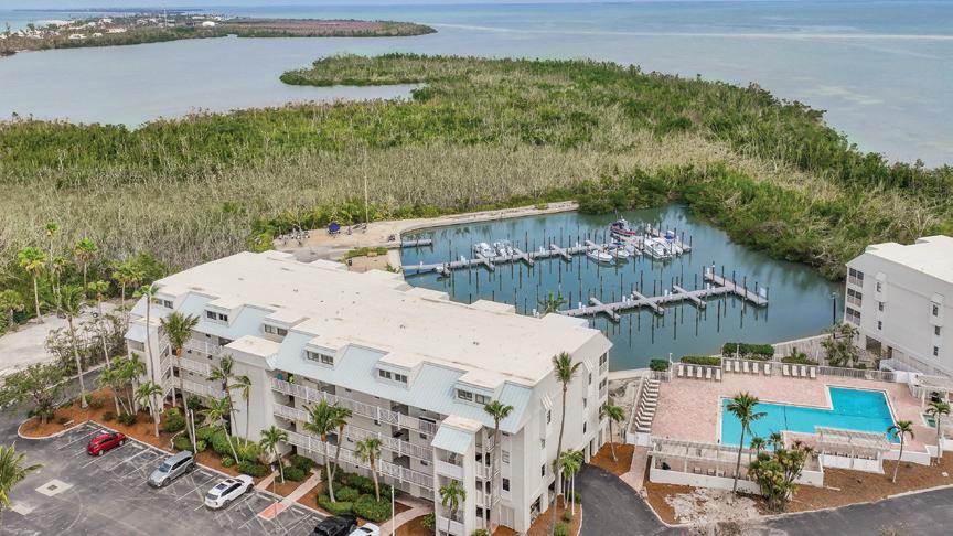 Mariner Pointe #312—bay‐view 2nd floor 2‐bedroom split‐plan with enclosed balcony. Unique corner with no unit above & private open entry deck. Summer sunset views & ameni�es galore including dockage. $399K furnished