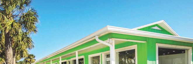and wraparound verandas. Lots of natural light showcases the quality finishes throughout. 3 bedrooms, 2.5 bath, split bedrooms with spacious primary suite, plus laundry room, elevator & loft with 2 home o ces. Located in the Dunes with deeded beach access, & permitted for a future pool. Impact windows & doors, metal roof, & Hardi Board siding, Flood insurance available.
