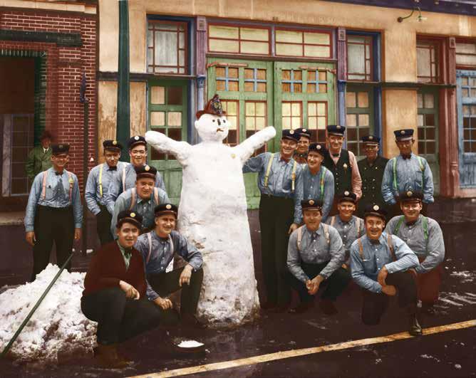 A Snowy Mascot at the Firehouse-circa 1930 Hunter Street station firemen added whimsy to their firehouse in this photo which appeared in the January 13,1920 edition of the Stockton Daily Record chronicling the unusual snowfall that had happened overnight. Their cold guest was built from the 3-inches that covered most of Central California— the first snow in the area in 13 years—making the Valley into a winter wonderland. Bank of Stockton was 63 years old at the time of this photo.