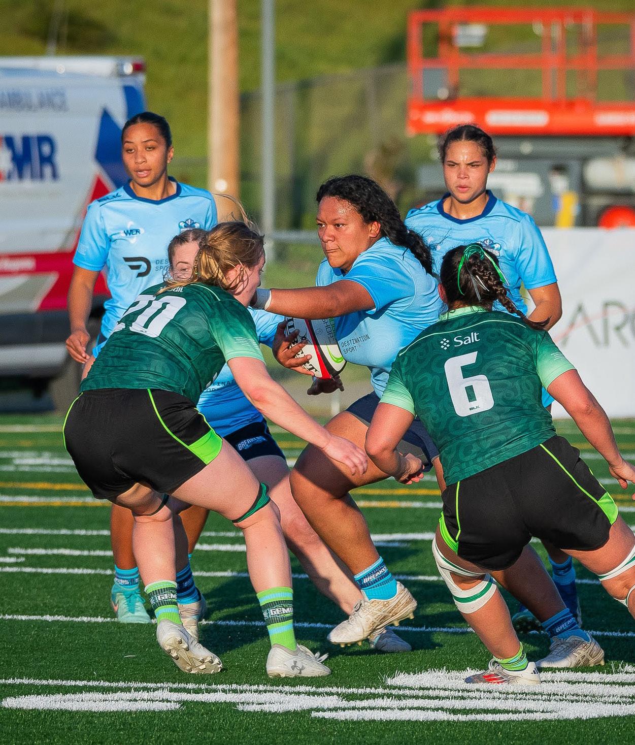 “A lot of these women have played D1 rugby,” Clare shares. Almost all of the players were on the WPL Rugby team the Berkeley All Blues while five rostered players also compete with the USA Rugby Eagles, the team that will compete in the World Cup in England this fall. Alev