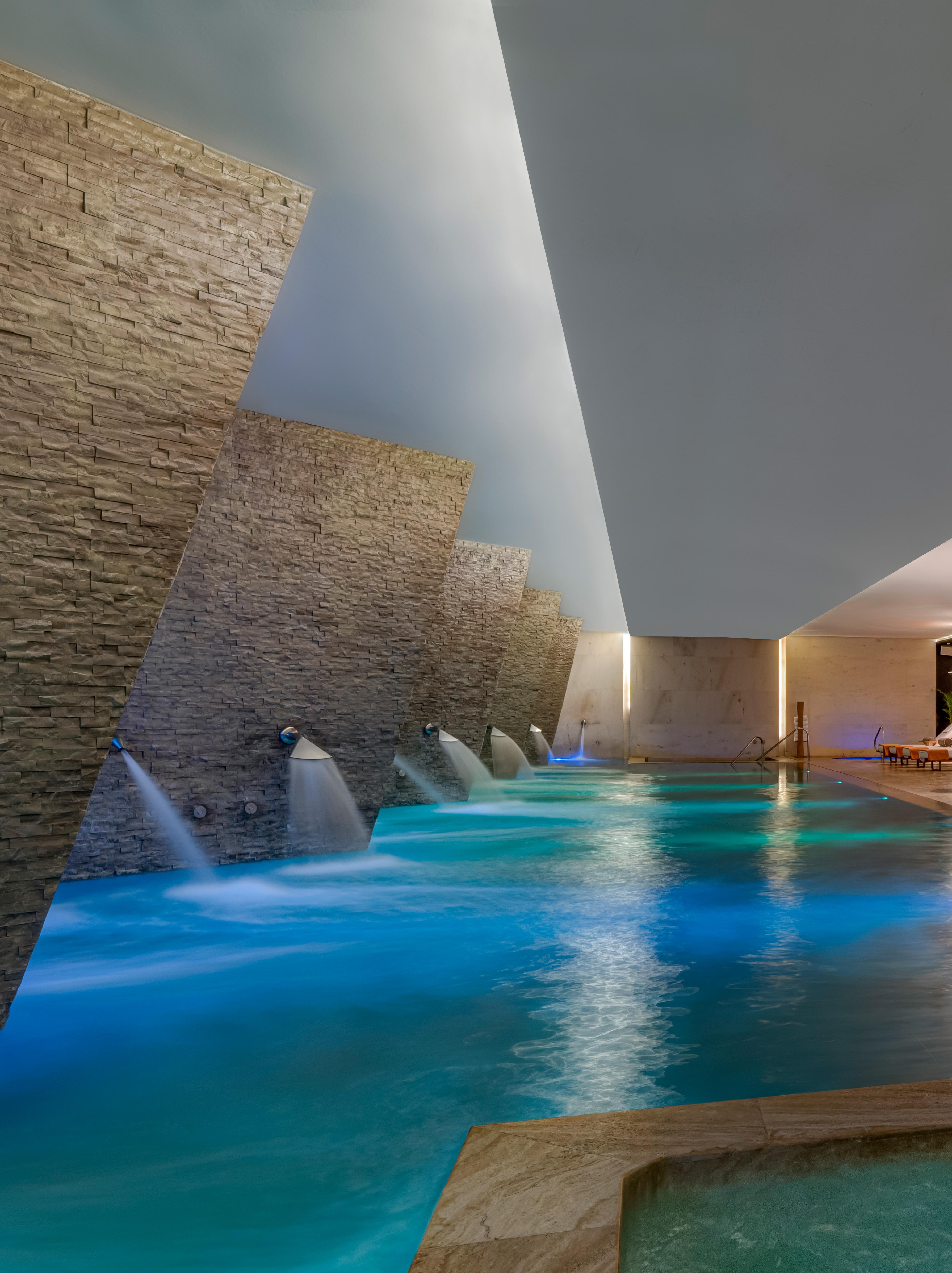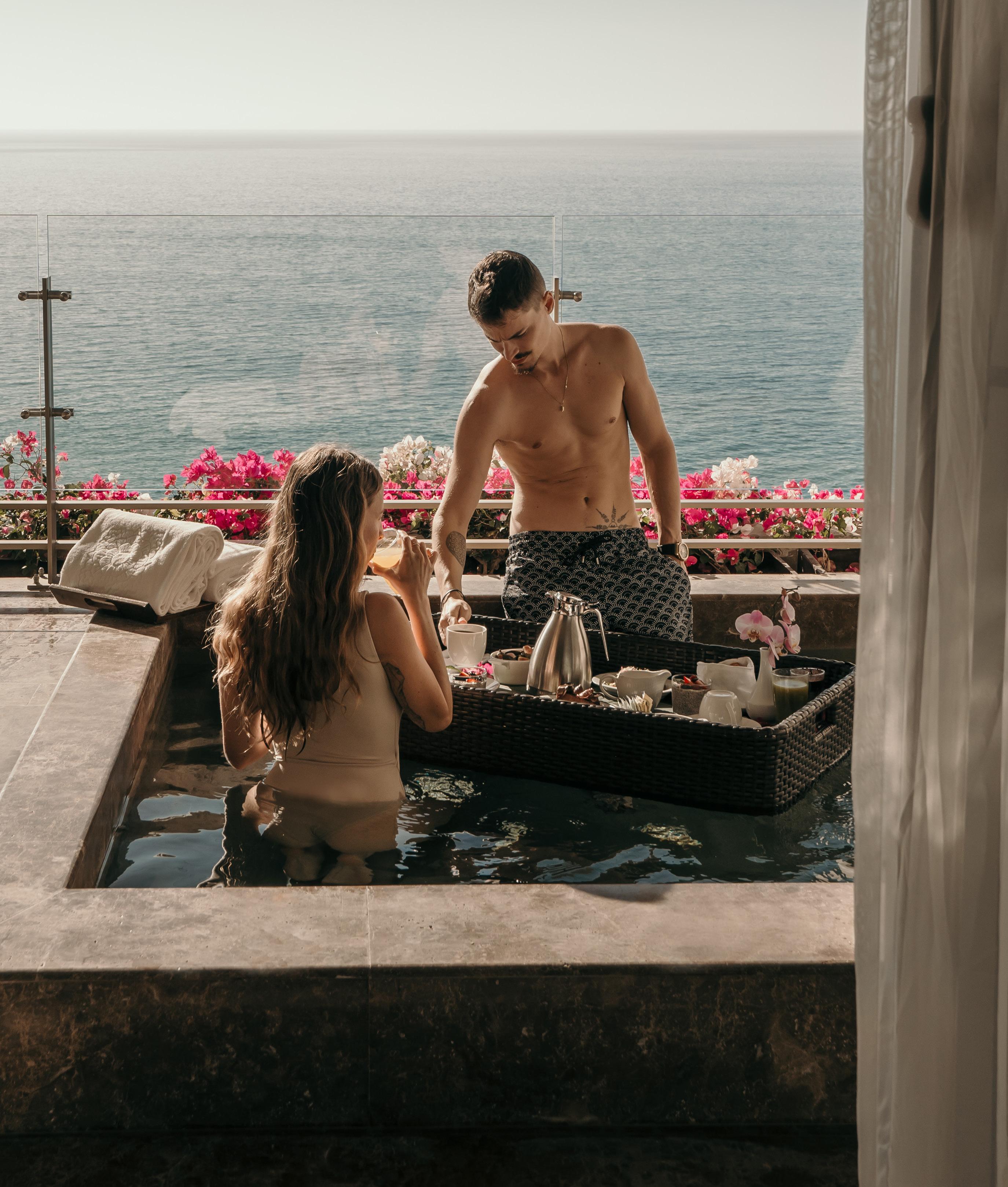 If you’re going to give in to utter bliss, you have to take advantage of the on-site spas. At Grand Velas Boutique Los Cabos, the cyclical, guided experience is a journey of healing and rejuvenation. A seemingly never-ending rotation of cold plunges, saunas, pressure jets, and ice baths heal you from the inside out. The process helps to release every stressor from your body, ending with a cup of hot tea and a vibrating, zero-gravity experience that feels more high-tech than you’d expect in the otherwise natural environment. Although we certainly recommend a massage if you can find the time. The treatment rooms overlook the pool and offer ever amenity you could possibly imagine. At Corazón, Sparitual provides a mini retreat to a secluded part of the resort. The white walls and bluetinged touches give off a Mykonos feel both in and outside of the spa, setting the stage for a truly relaxing evening. A day pass gets you access to the sauna and hot tub, while private treatment rooms cater to sore muscles with aromatherapy and hot stone massages as well as full body scrubs and facials. =