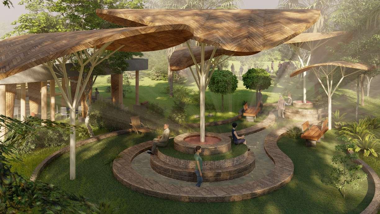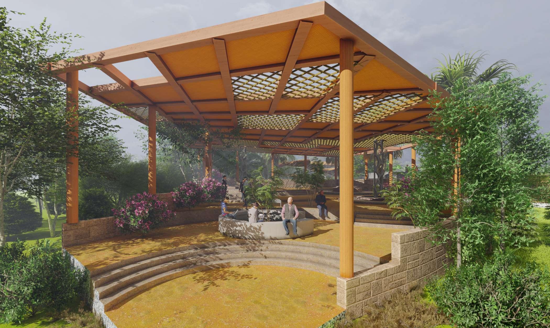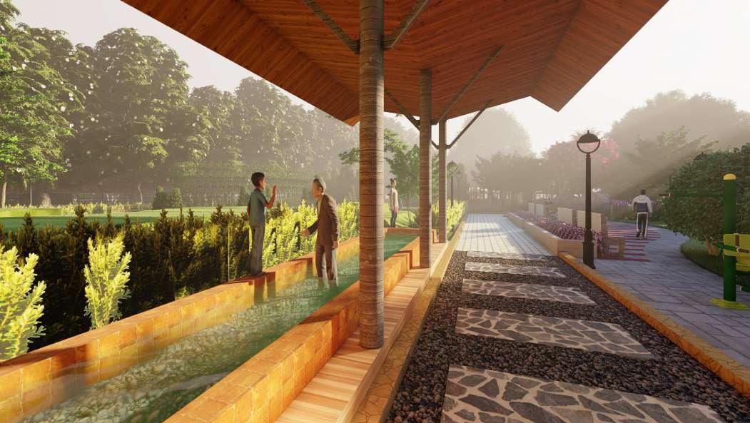 Located by the Yamuna River, our site honors the Sun God’s connection with the river. We integrated a sundial symbolizing this celestial bond. Positioned along the river, the sundial utilizes solar energy to cast shadows for timekeeping and spiritual harmony with cosmic forces, embodying the Sun-Yamuna relationship.