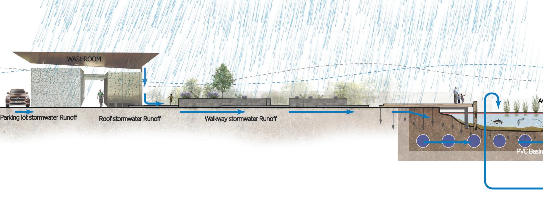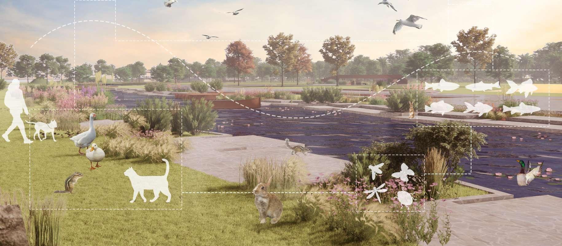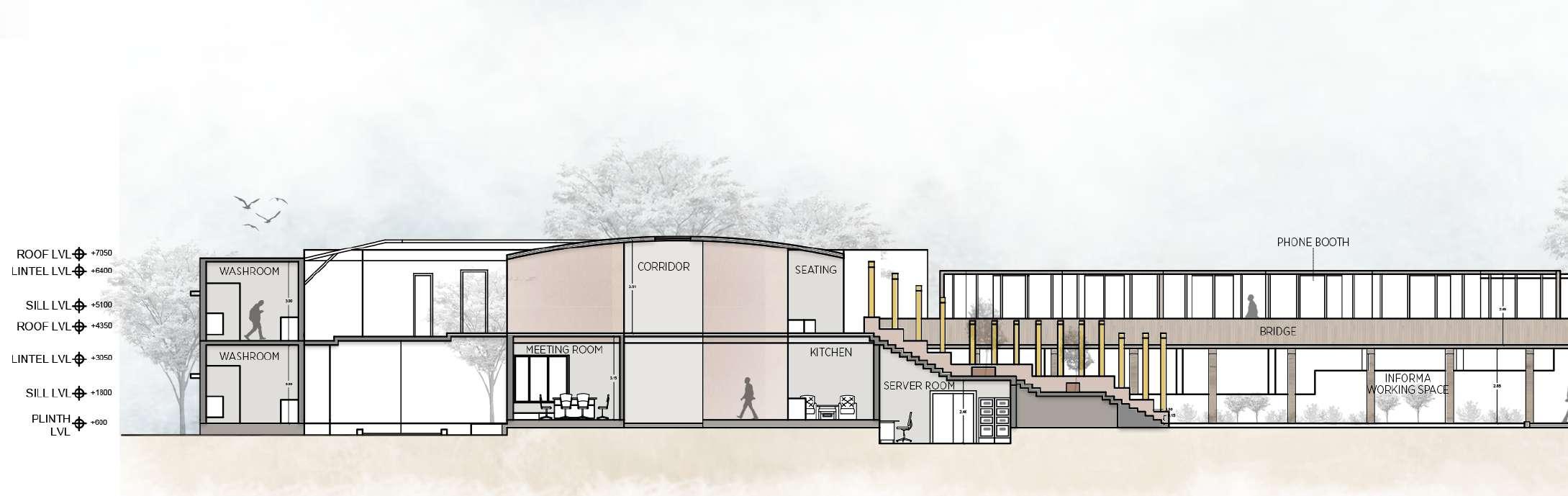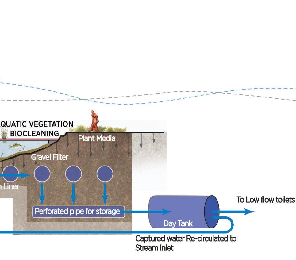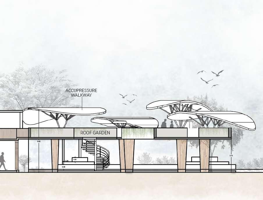 The ghat holds an important aspect in design serving to the very main purpose of the site which is Chhath pooja and also ghat designed with plantation of froth reduction plants helps to clean water and reduce froth and also becomes a habitat for aquatic life i.e. leads co-existence of human & non human species