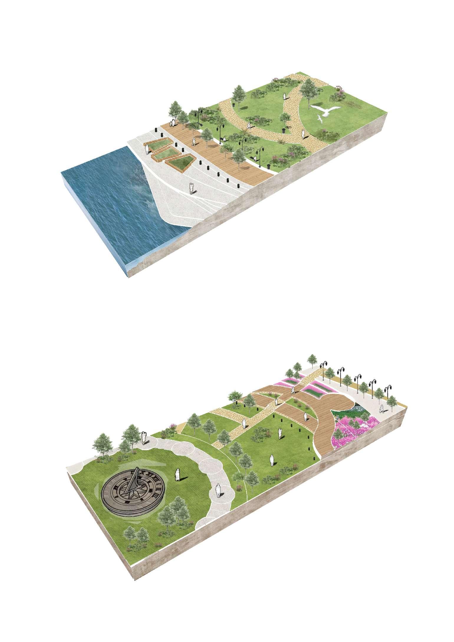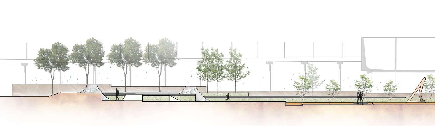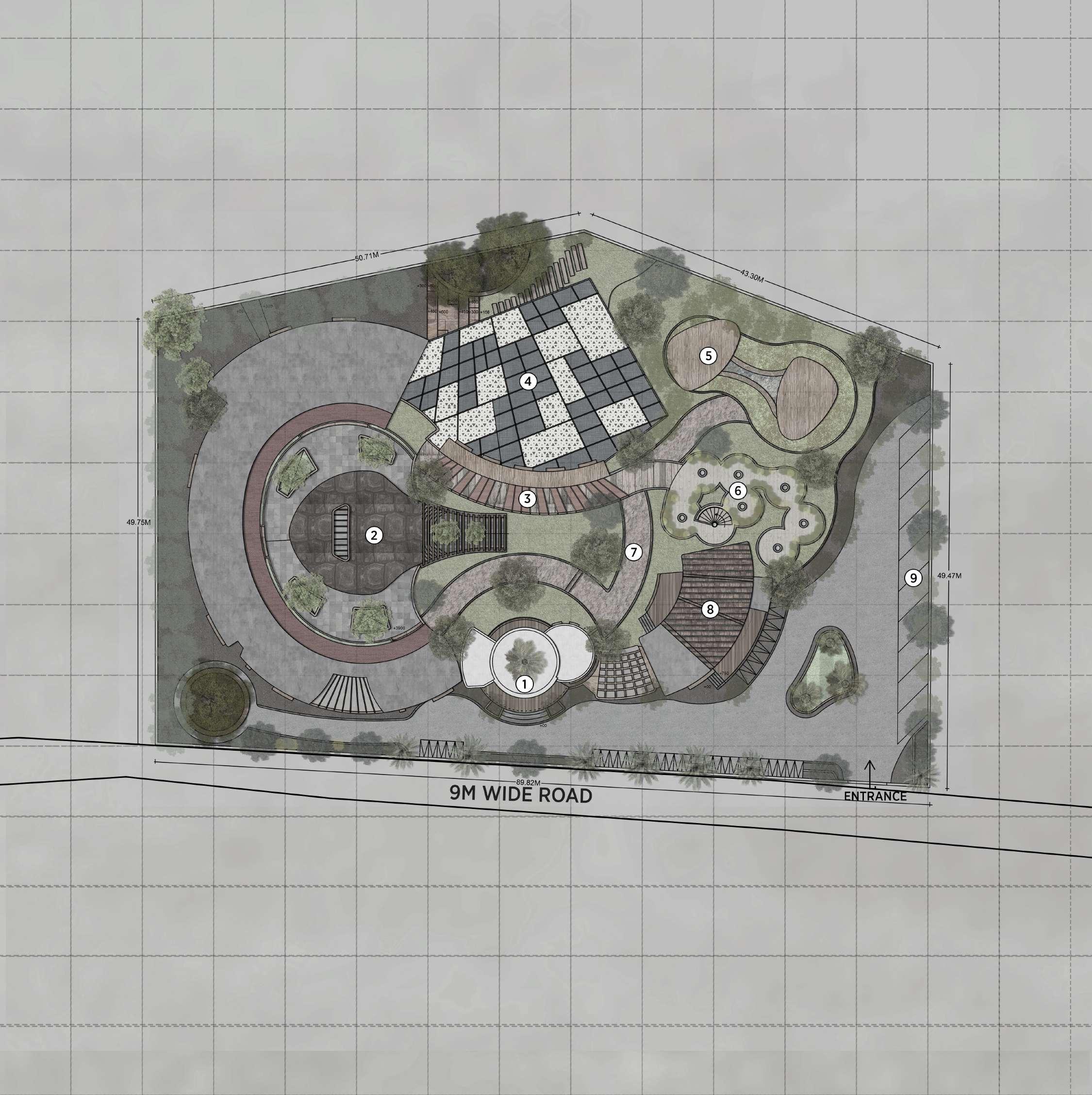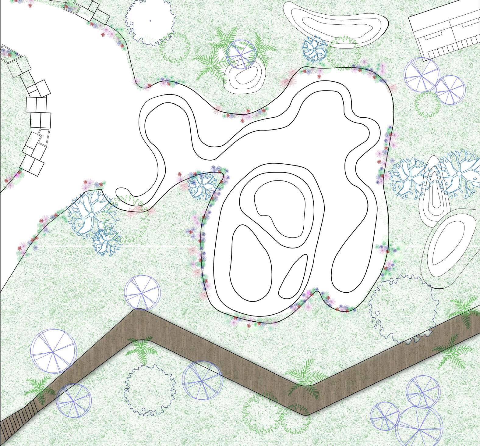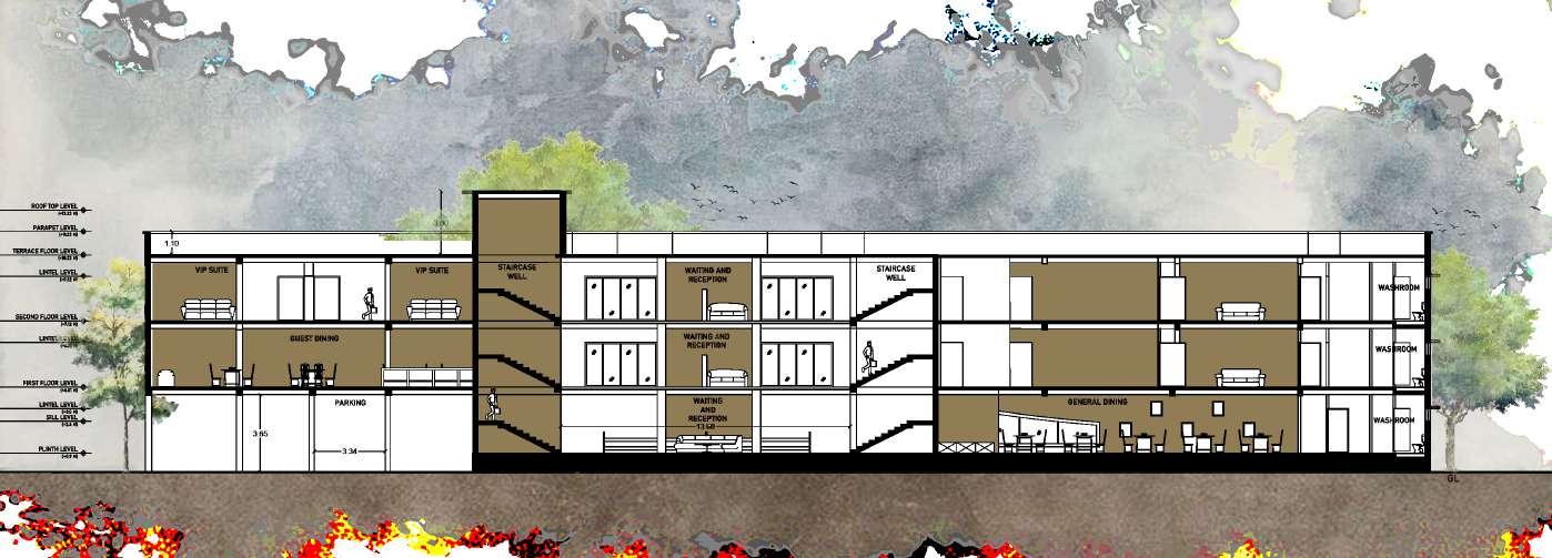 The Chhath ghat in Noida is designed to honor the Chhath pooja tradition and uplift the Yamuna River. The intervention works to rejuvenate as well as increase the co- habitability of the space by introducing 5 distinct zones which cater to various aspects of the design problem. The ghat area is for celebrations, the sundial zone offers a historical walk, the wetland system reduces pollution and provides an interactive experience, raingardens offer respite, and the crematorium design enhances the existing facility.