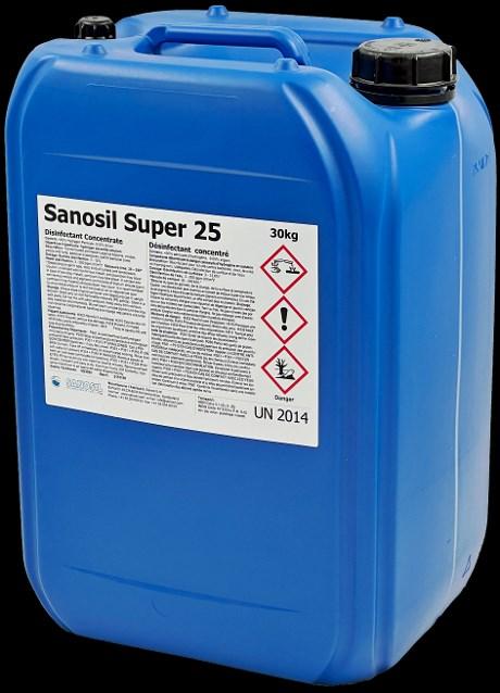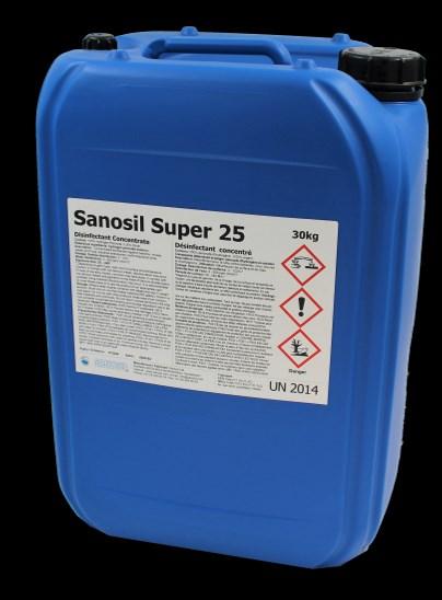 La gamme S de Sanosil pour l'industrie agro-alimentaire comprend les produits Sanosil S003, S010 et Super 25, qui se distinguent par la concentration de leurs composants et donc aussi par leur puissance.