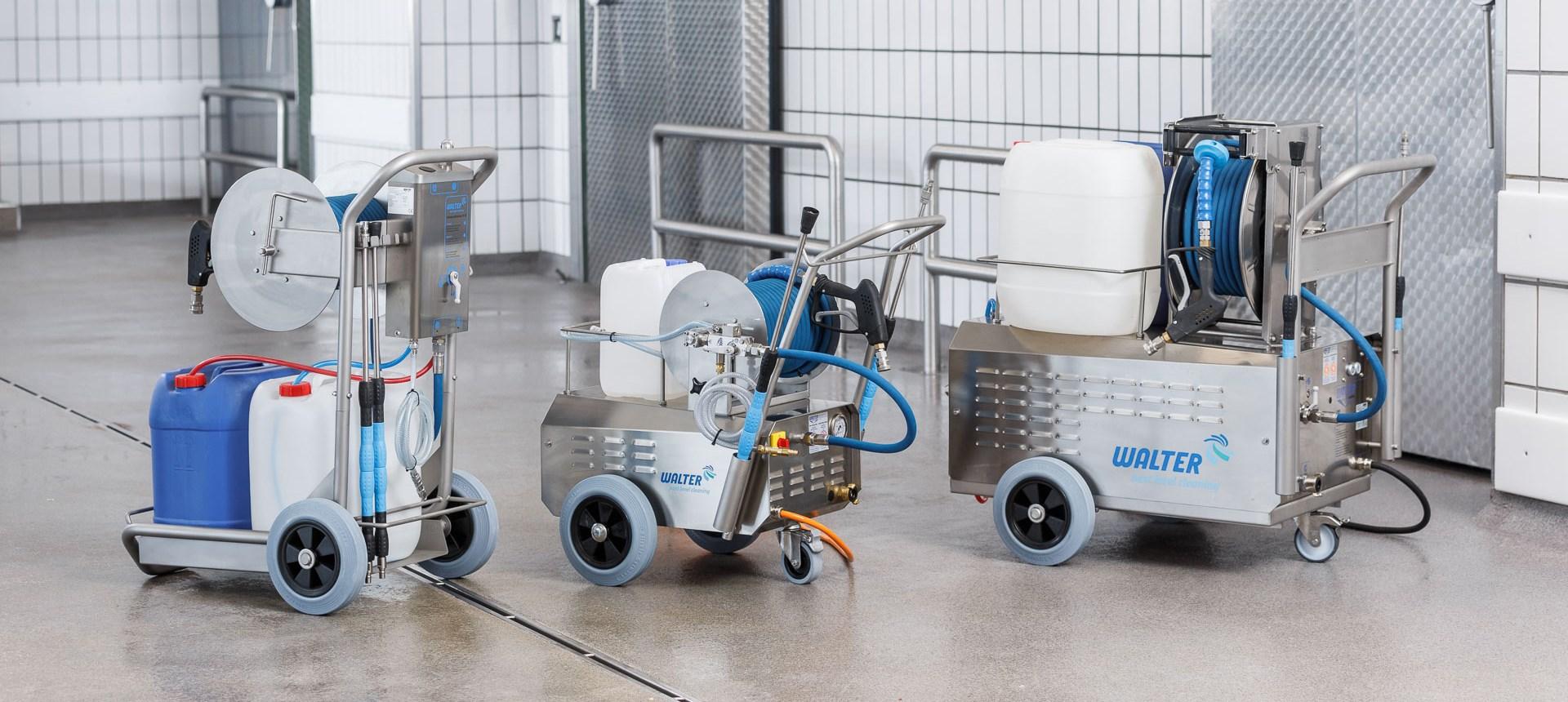 Ses appareils sont parfaitement adaptés au nettoyage à l'eau sous pression, à l'application de mousse active FoamClean E et à la pulvérisation de solutions désinfectantes toujours fraîchement préparées avec Sanosil Super 25. Les systèmes fabriqués par Walter sont disponibles sous forme d'installation fixe ou mobile.