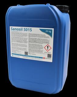 Vaporiser les surfaces du réservoir avec une solution à 20% de Sanosil S015 (ou une solution à 3% de Sanosil Super 25). Consommation env. 30-40 ml de solution par m2 .