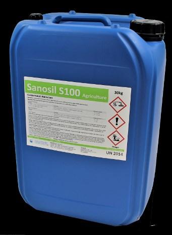 Sanosil S100 is a multifunctional, highly concentrated disinfectant for agricultural applications. It is suitable for disinfecting water, pipes and tanks as well as for treating surfaces and equipment. S100 is exceptionally powerful against biofilms, which makes it the preferred product for eliminating and preventing germs and blockages in irrigation systems.