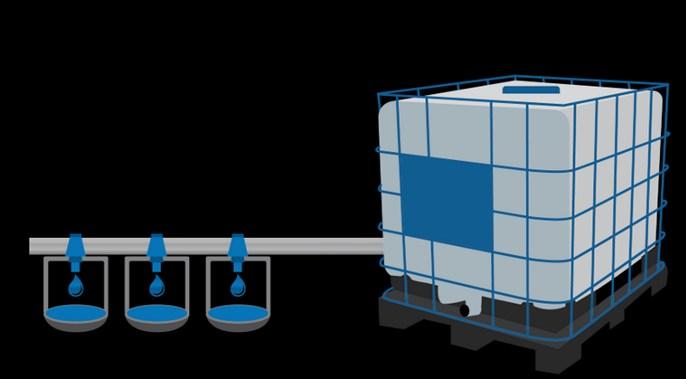 L'ajout en continu* d'une faible dose de Sanosil Super 25 à l'eau de l'abreuvoir évite d'avoir une nouvelle prolifération de germes. Le dosage habituel s'élève à env. 0,03-0,05 ml par litre d'eau (3050 ppm), sachant que c'est la concentration finale mesurée au niveau du point de prélèvement qui compte. Y ajouter une solution-mère à 1:99 et régler la pompe doseuse sur 0,3 à 0,5 %. La solution-mère doit être utilisée en l'espace d'env. 48h.