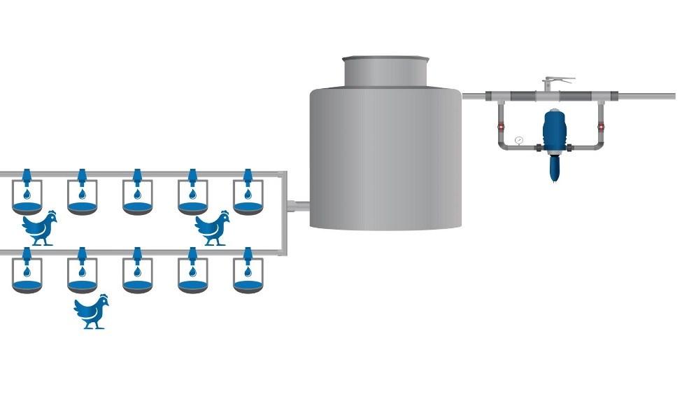 Wasser- und Tränkesysteme können durch Kalk oder dem Wasser zudosierte ölhaltige Vitaminlösungen harte oder harzige Beläge bilden. Diese begünstigen Bakterienwachstum. Durch die Anwendung von Säure oder Lauge können diese Krusten einfach entfernt werden.