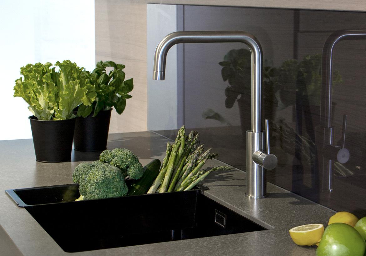 Moderna köksblandare från LH i kvalitativ 316L rostfritt stål. Finns i fem modeller, dessa med olika former och funktioner för respektive modell. Samtliga modeller finns att beställa i fyra borstade färger, se färgtabell längst ner på sid. 7. Diskmaskinsavstängning & diskmedelspump finns att köpa till i samma borstade design, se sid. 28.