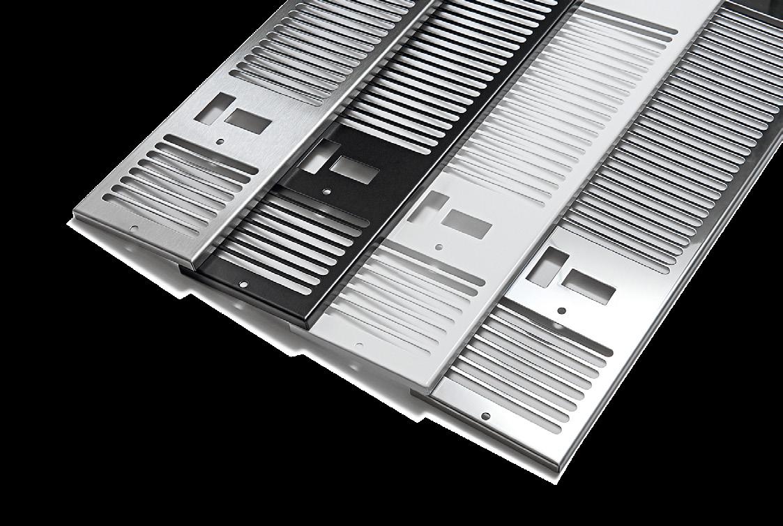 Frontgallren finns i kulörena matt rostfri, svart, vit och krom