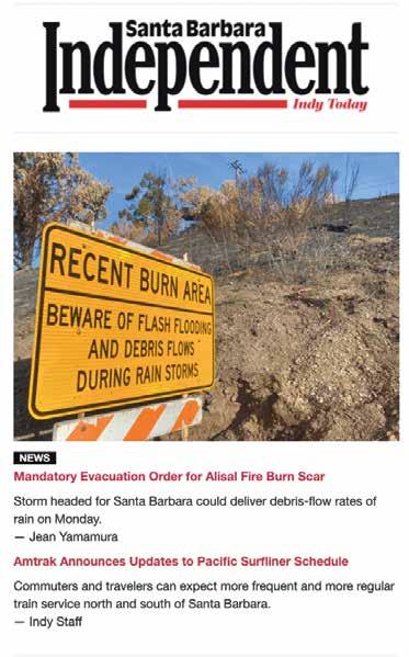 Print subscriptions are available, paid in advance, for $120 per year. Send subscription requests with name and address to subscriptions@independent.com. The contents of the Independent are copyrighted 2026 by the Santa Barbara Independent, Inc. No part may be reproduced without permission from the publisher. The publisher assumes no responsibility for unsolicited material. A stamped, self-addressed envelope must accompany all submissions expected to be returned. The Independent is available on the internet at independent.com. Press run of the Independent is 25,000 copies. Audited certification of