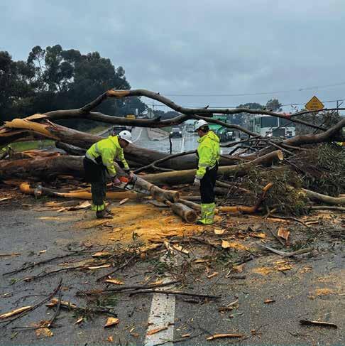 Strong winds and heavy rains arrived in Santa Barbara County on Presidents’ Day, downing several trees in the Goleta area and forcing a temporary closure of Highway 101 near Fairview Avenue after a large eucalyptus fell across all southbound lanes, over the median, and into the fast lane on the northbound side. California Highway Patrol and Santa Barbara County Fire crews reported the downed tree on Highway 101 around 9:30 a.m., and the entire southbound side remained closed through much of the morning to allow for cleanup. The fallen tree did not result in any injuries. More downed trees in Goleta and near Summerland forced roadways to be closed or diverted temporarily. Most of Santa Barbara County saw about half an inch to one and a half inches of rain Monday, though some mountain areas recorded more than two inches. Rain is expected to pick back up this Thursday, with more chances of rain extending into next week.