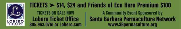 Santa Barbara Permaculture Network celebrates its 6th Annual Eco Hero Award with Two Transformative Advocates & Activists for Beavers, Salmons & Watersheds Watersheds, Our Basins of Relations An Evening with Brock Dolman & Kate Lundquist Children & Students FREE - Reception in the Lobero Courtyard HONORING BROCK DOLMAN & KATE LUNDQUIST Of THE WATER