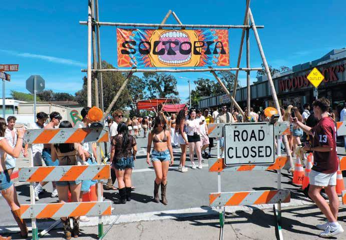 The sun and about 11,000 people turned out for the first-ever Soltopia Festival in Isla Vista on Saturday. Throngs of people meandered through the festival grounds, which spanned the Embarcadero Loop area. They gathered around stages to cheer on live bands, danced to deejay sets, shopped for thrifted clothes, got face paint and temporary tattoos, and waited in stretching lines for food.