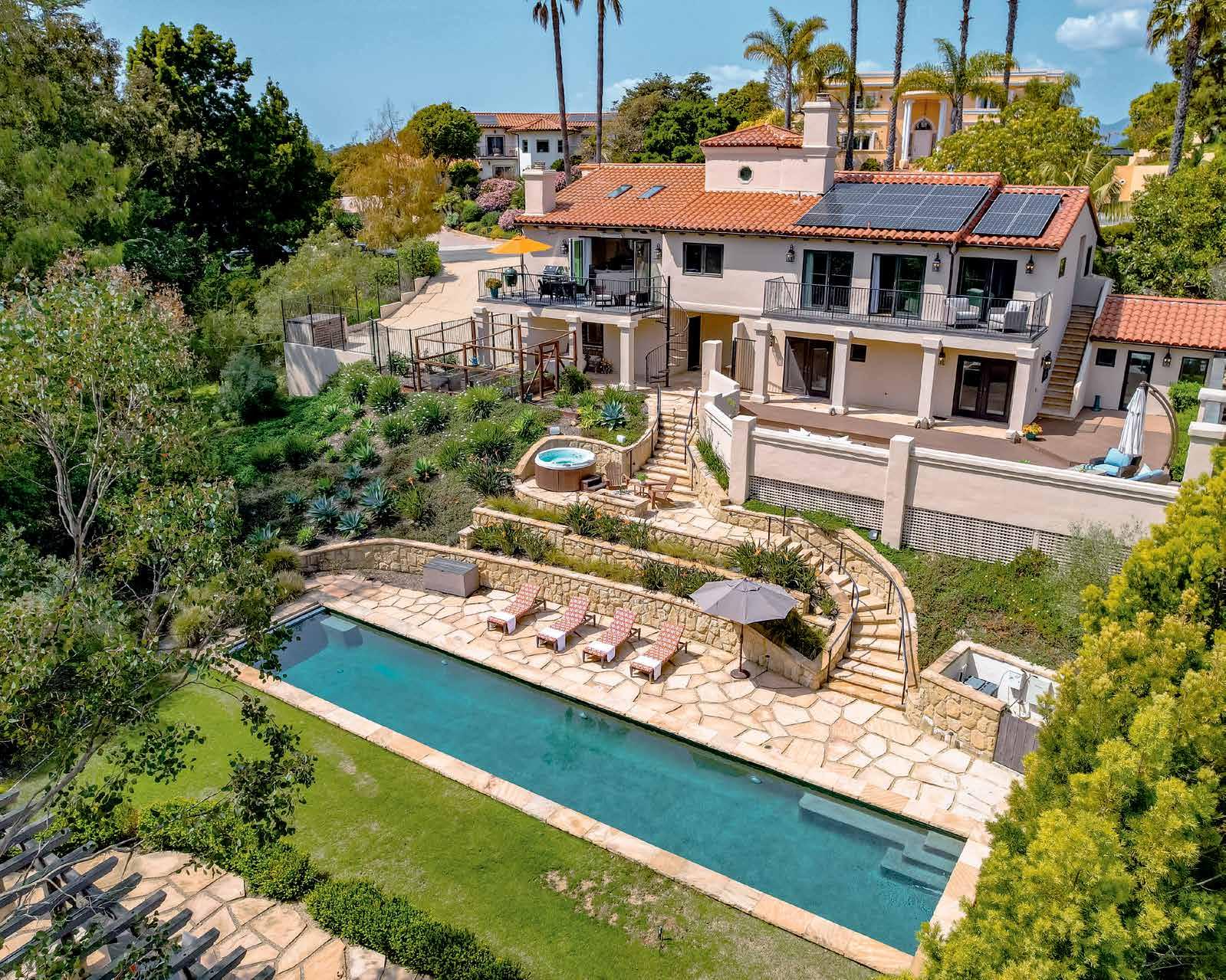 Experience resort-style living in this extraordinary private retreat. The stunning 60-foot azure lap pool serves as the sparkling centerpiece of the property, surrounded by sun-drenched terraces perfect for entertaining, relaxing, and unwinding.