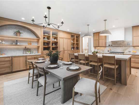 The gourmet kitchen is outfitted with top-of-the-line Wolf appliances, including a range, double oven, microwave, and built-in coffee system, complemented by Sub-Zero refrigerator and wine refrigerator. Elegant Viatera Minuet quartz countertops, custom frameless cabinetry with soft-close guides, and RMS White Oak flooring showcase the exceptional craftsmanship and attention to detail throughout.