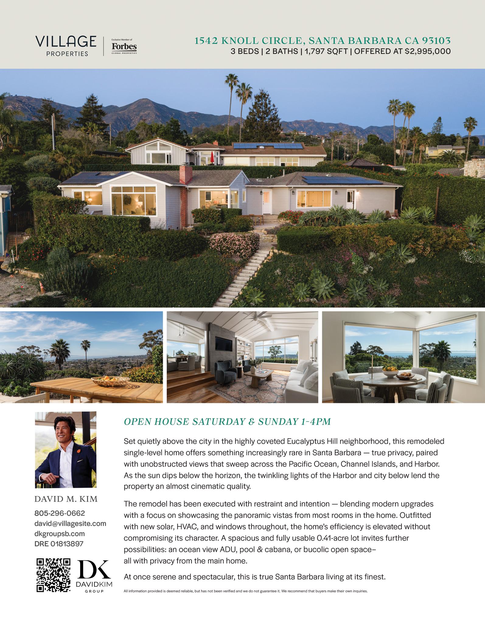2831 Miradero Drive A, 3BD, 2BA, Sun 1-4, $1,099,995, Berkshire Hathaway HomeServices California Properties, Jacob Delson 805-5587251, DRE#02041682
