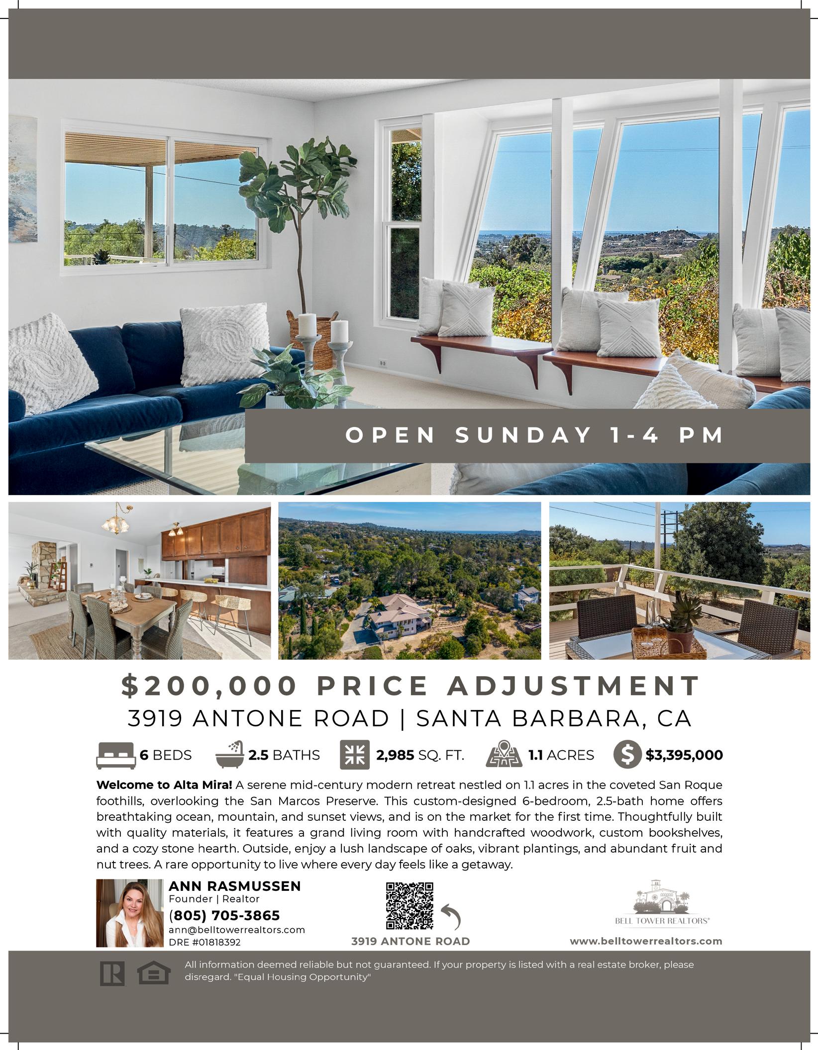 Reyne Stapelmann, 805.705.4353 LIC# 01347808 OPEN SAT/SUN 1:30-3:30