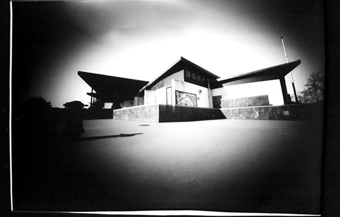 ‘Pinhole Noir’ – The Spring Exhibition at the Architectural Foundation Art Gallery exhibits a series of recent photographs by Lindsay Skutch, whose striking black-and-white images of familiar sites and sights in Southern California are taken with pinhole cameras, the historic form of camera obscura, a box with a small opening that allows light to pass through a tiny aperture and project an inverted image. The technique has been used since the 16th century by artists such as Leonardo da Vinci. Skutch – who attended Brooks Institute of Photography in Santa Barbara, leading to a 38-year career in Los Angeles and New York producing global commercials with directors that included Sydney Pollack, Alfonso Cuarón, and Kathryn Bigelow –compares that highly structured world to pinhole photographs, which have a large reliance on chance. “You have no idea if the negative will turn out or what the image is truly going to look like,” says Skutch, who prints all her photographs from images captured by cameras she makes and negatives she processes. “There is no viewfinder and no way of knowing if the tin can is even pointing at what you want it to.”