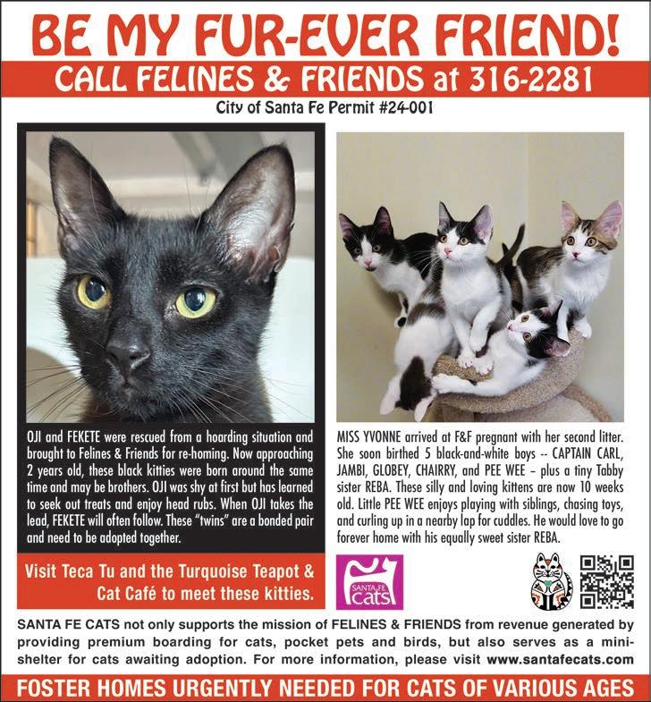 New/Used Vinyl & Tapes Buy • Sell • Trade 131 W. Water Street 505.310.6389 MASSAGE BY JULIE Swedish • Deep Tissue Same Day Appts Welcome $65 60 MIN - $80 75 MIN $95 90 MIN 20+ YEARS EXPERIENCE LIC. 3384 - 670-8789 Reawakening Santa Fe Counseling Services 505.458.8188 | 215.983. 6036 | Reawakensantafe.com Individual & Group Therapy In person or telehealth Marybeth Hallman MA, LMHC Your Life Reimagined. FREE Initial Consultation. Call now! We take a unique approach to holistic Health! Visit us at: 4056 Cerrillos Road - Unit D-1 www.daisysholistichealth.com | 505.780.8687 LOCALLY OWNED AND DEDICATED TO GREAT CUSTOMER SERVICE. We offer a wide range of herbs, botanicals, spices, vitamins and supplements. In addition, we have an onsite water dispensary system to provide our guests with high alkalinity and reverse osmosis H2O. We have the BEST Online Calendar in Santa Fe Looking for something to do? Fear not! Our Free Online Calendar is updated regularly with live music, lectures, workshops, gallery exhibitions and more! Visit: sfreporter.com/calendar Submit to our calendar editor at calendar@sfreporter or use the online portal. Please submit at least one (1) week prior to the issue date. Got an event? DEBORRA’S MOBILE DOG GROOMING 505-670-4215 WHITE CLOUD INST Santa fe class begin Sept 18 Whitecloudinstitute.info JUST FOR FUNSIES video library 839 p de p 983-3321 fri-mon 12-6pm