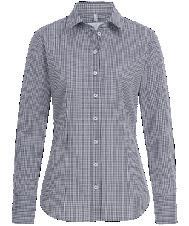 Langarm, V-Ausschnitt, Kragen und Manschette aus Webware.