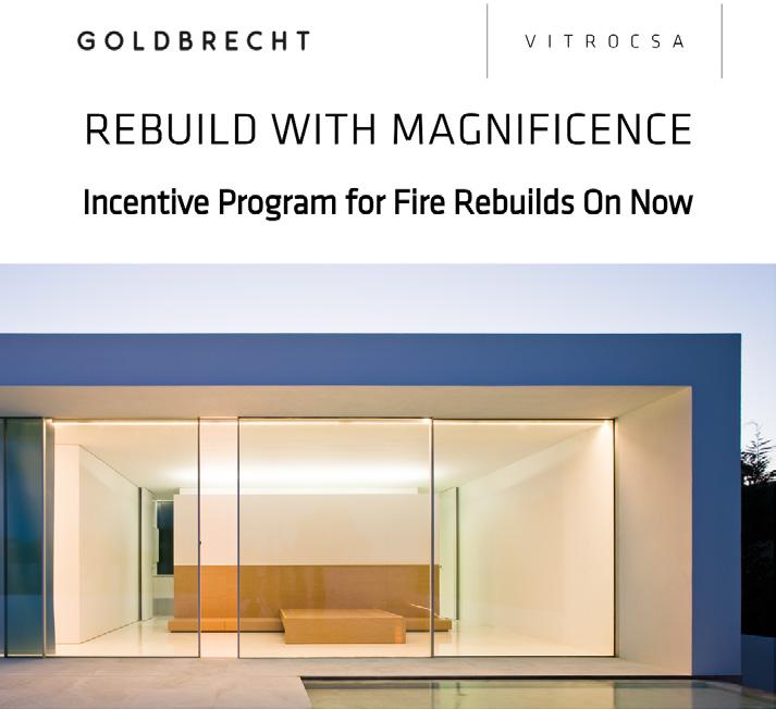 Goldbrecht is committed to help rebuilding the Pacific Palisades with confidence and beauty. Visit www. goldbrecht.com or contact info@ goldbrecht.com or +1 310-981-5115 to learn more about the exclusive program. Create a home that is even more magnificent than before.