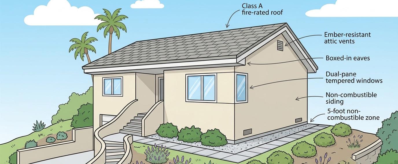 For homeowners in Brentwood, Bel Air, Santa Monica and the Palisades, rebuilding and remodeling now come with a new non-negotiable: planning for the next fire before it starts. In neighborhoods surrounded by canyons, open space and coastal winds, fire safety is no longer an afterthought—it is part of smart home design. Whether you are rebuilding in the Palisades or simply upgrading an older home elsewhere on the Westside, the choices you make today can dramatically improve your home’s chances of surviving a future wildfire. The best place to start is at the top. Roofs are often the first point of vulnerability, as wind-blown embers land on shingles, gather in valleys and collect in gutters. Upgrading to a Class A fire-rated roof—such as composition shingles, metal, clay or concrete tile— provides a much more durable barrier than older wood shakes. Sealed edges, metal flashing, and non-combustible gutter guards help keep embers from slipping under the roofing or smoldering in debris. Adding ember-resistant attic vents, along with boxed-in or soffited eaves, closes off the small gaps that often become entry points for sparks. From there, attention should turn to windows and exterior walls. In intense heat, single-pane glass can crack or fail quickly, allowing flames and embers inside. Dual-pane windows, especially with at least one pane of tempered glass, are far more resistant to heat and impact. On the walls, non-combustible materials like stucco, fiber-cement boards, brick, or masonry create a tougher skin for the house. Even on wood-framed construction, combining these exterior finishes with fire-resistant insulation and upgraded interior drywall can buy precious time if flames approach. The ground level is just as important as the structure itself. Creating “defensible space” means managing the landscape so that fire has fewer opportunities to reach the building. The first five feet around the home should be treated as a non-combustible zone: concrete, pavers,