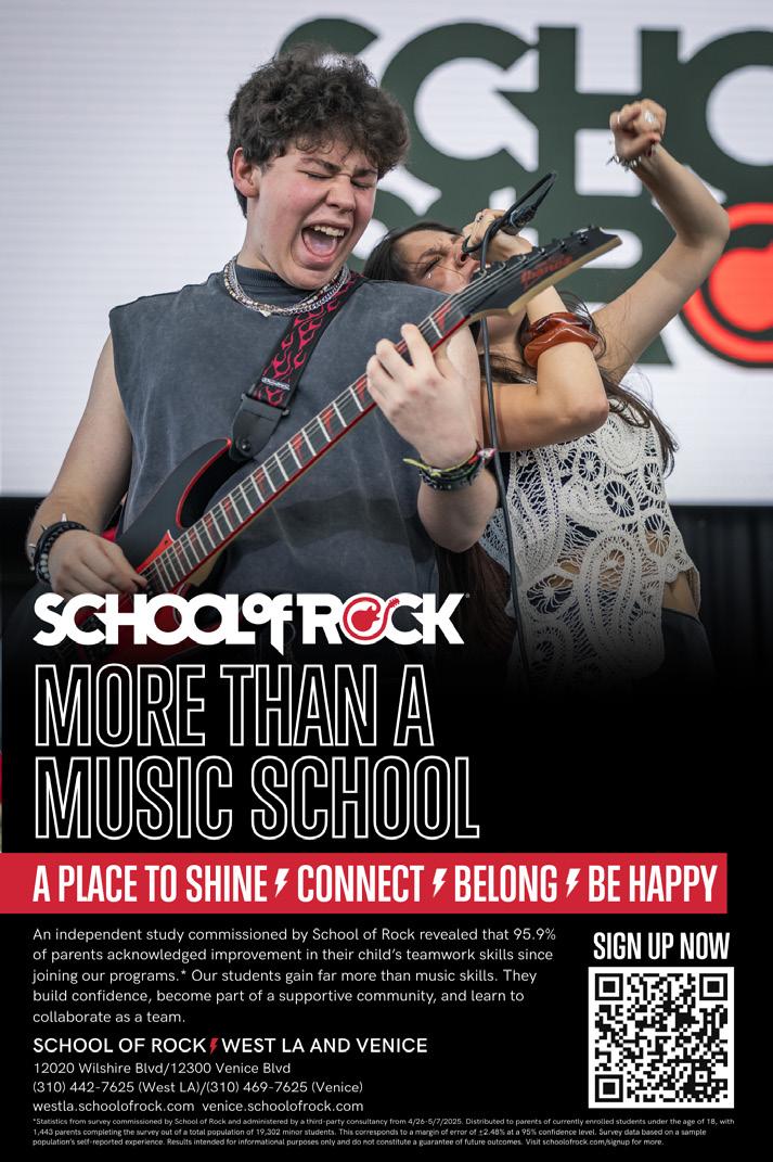 To learn more about School of Rock or activate your free trial, visit Venice.SchoolofRock.com or WestLA. SchoolofRock.com.