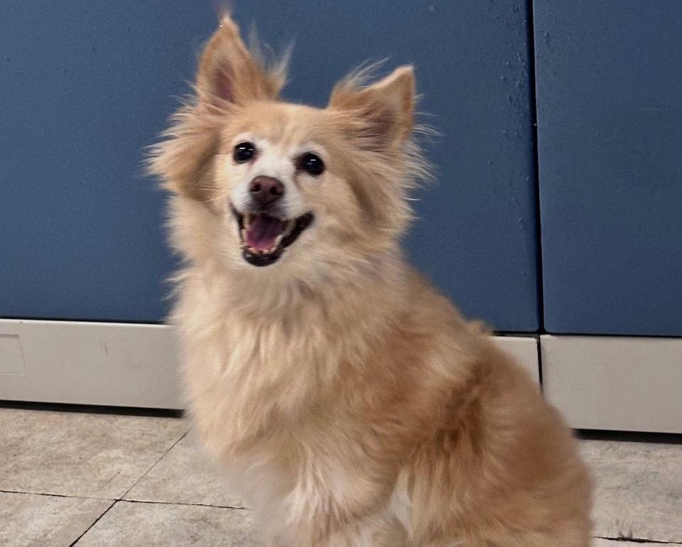 Libby is a 9 year old Pomeranian mix. She is a spayed female who likes to walk on a leash and likes other dogs. She has soft golden