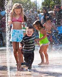 • A multi-generational water play experience with 16 interactive, recirculating spray features such as dripping palm trees, water cannons, deck sprayers, a super soaker, spraying arches, a water activity table, and a variety of other automatic and manually operated elements.