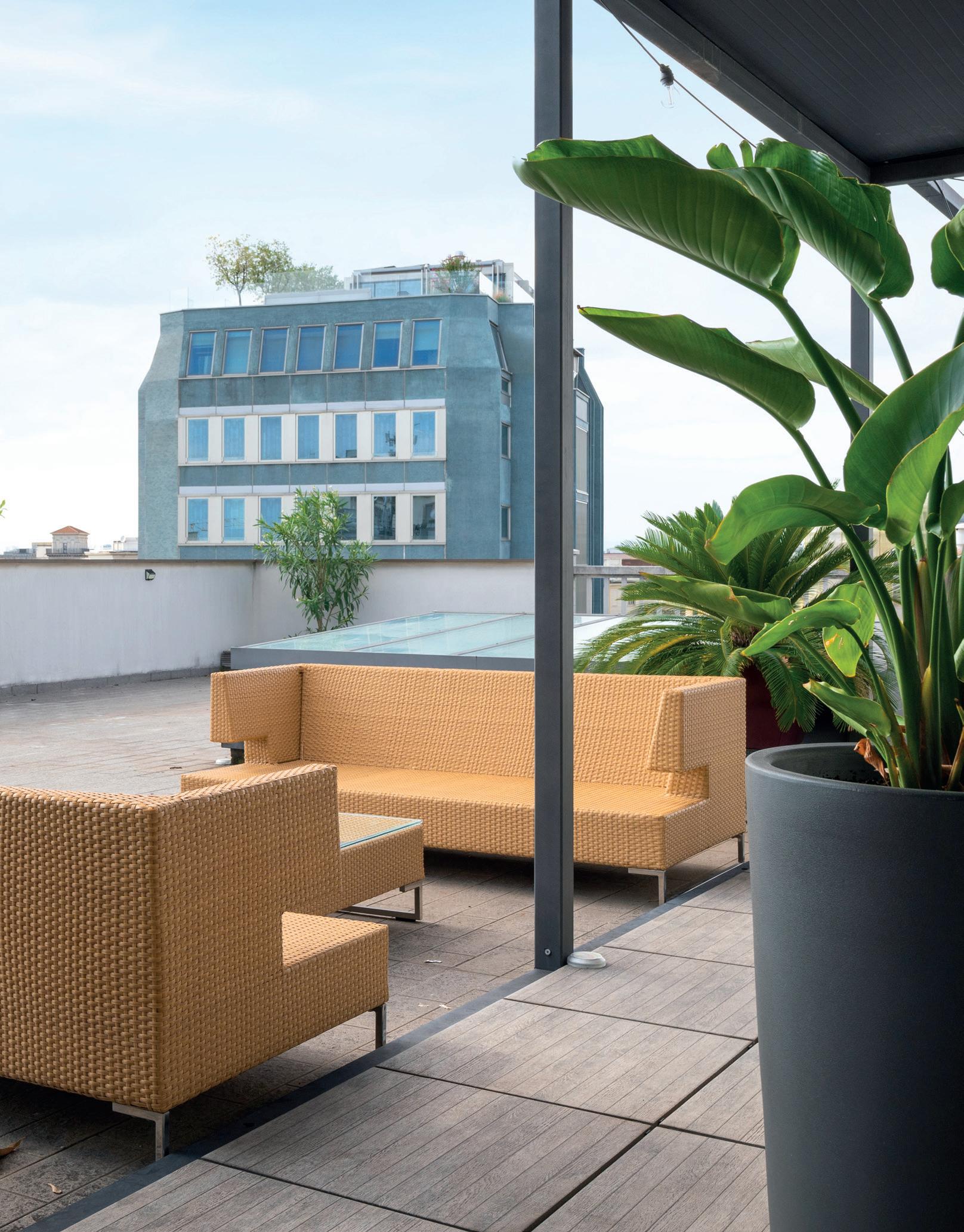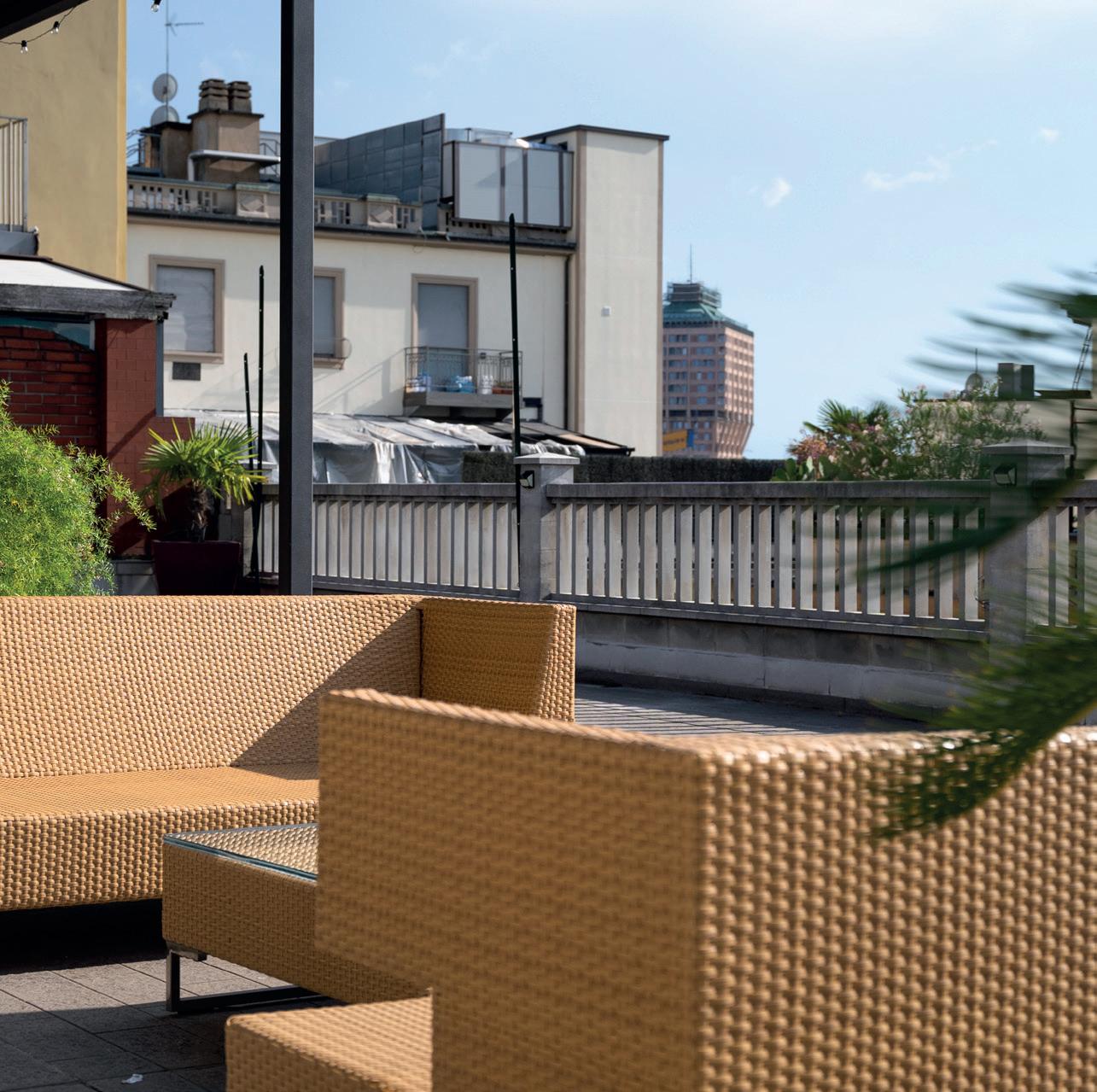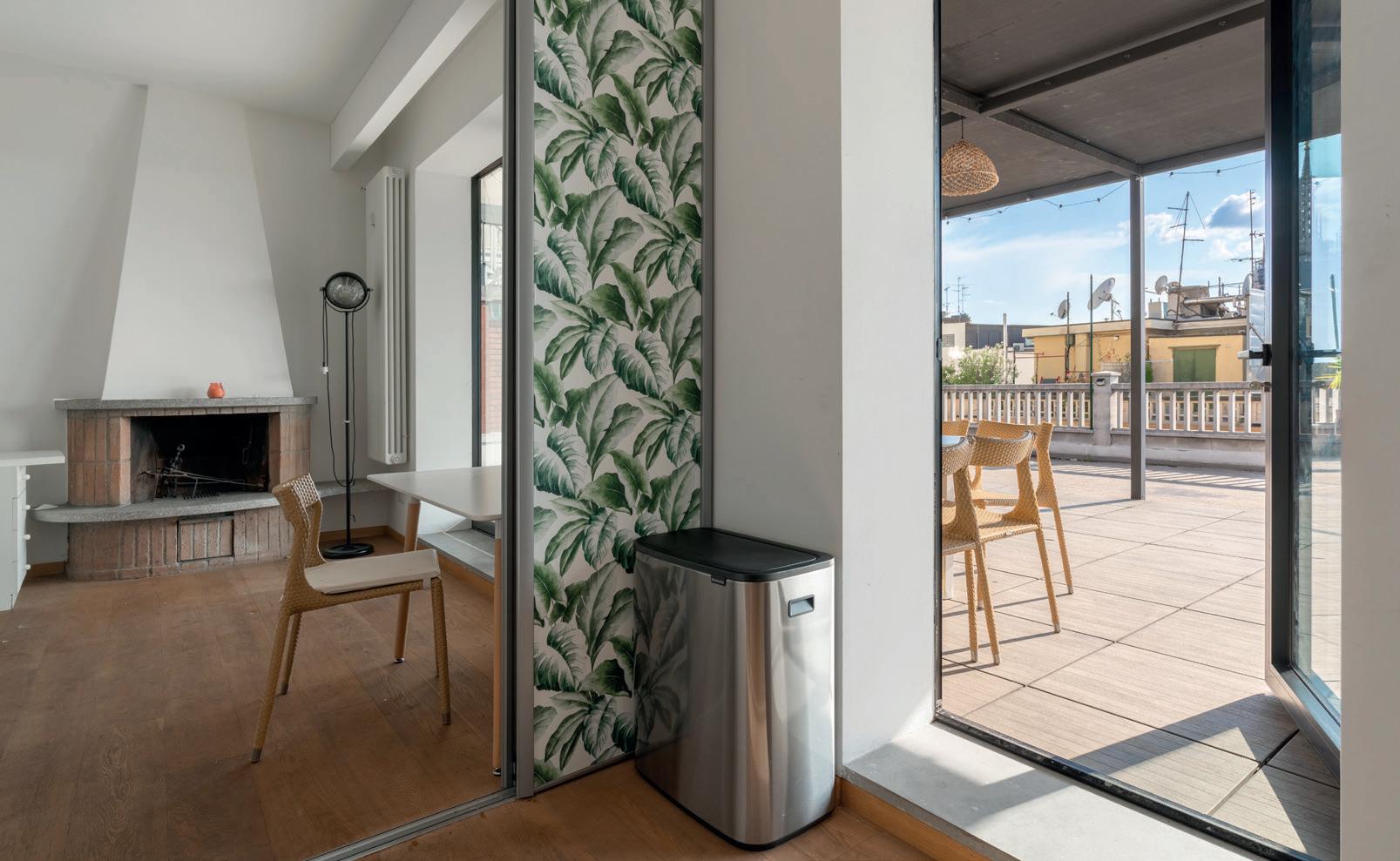 Al piano 7° è situato l’appartamento più piccolo, un bilocale di mq. 48 c.a con caminetto e corredato da un ampissimo terrazzo (mq. 260) con vista Duomo. Il terrazzo, in parte coperto da un pergolato, è molto ampio e funzionale, tranne che per lo spazio occupato dal “pozzo di luce” vetrato che dà luce all’appartamento sito al piano sottostante. La parte del terrazzo adiacente la vetrata di accesso si potrebbe chiudere con una veranda bioclimatica.