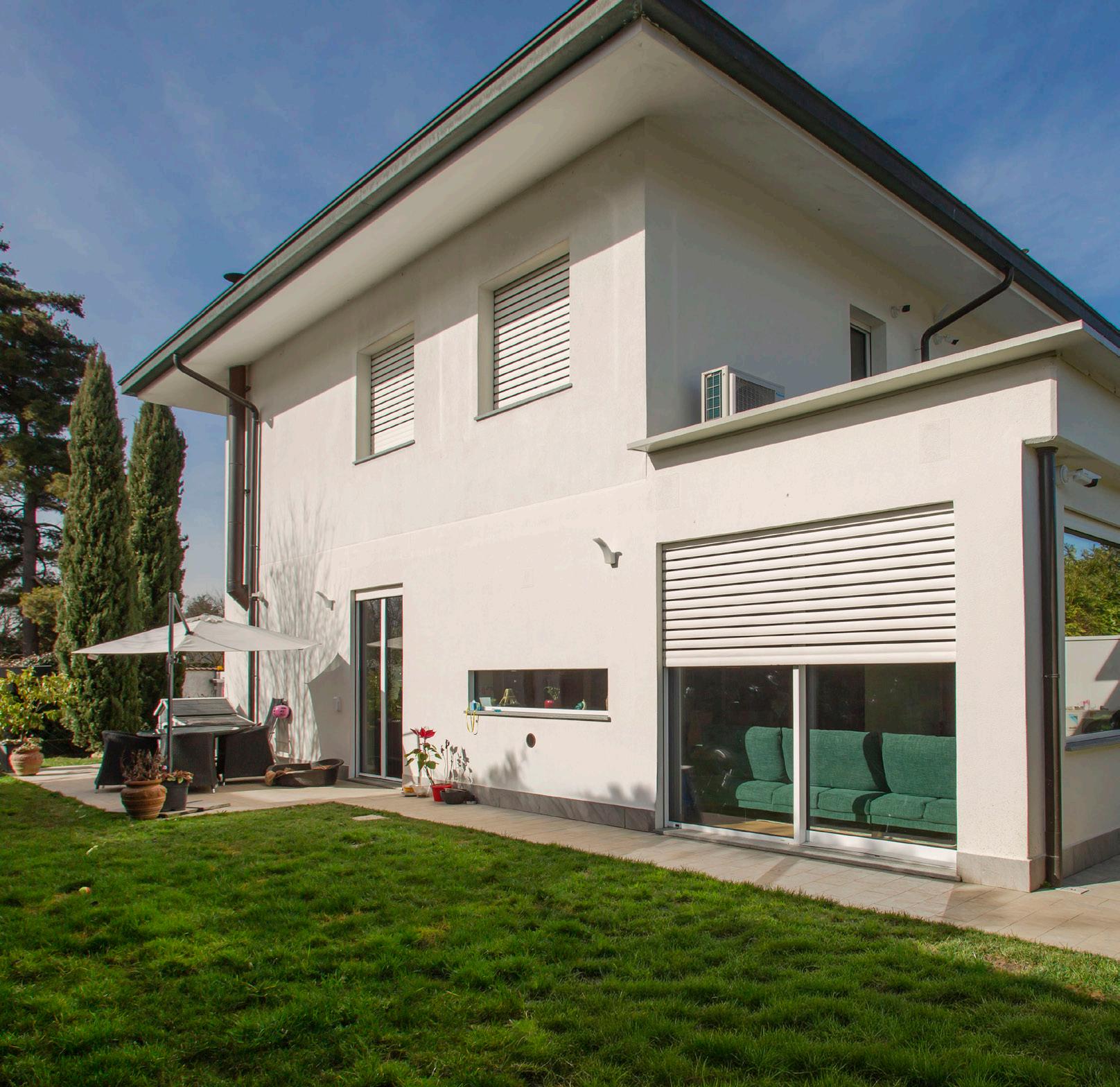 Ad Arese, in via Campo Gallo, questa villa bifamiliare rappresenta una rara sintesi tra estetica contemporanea, efficienza e qualità costruttiva.