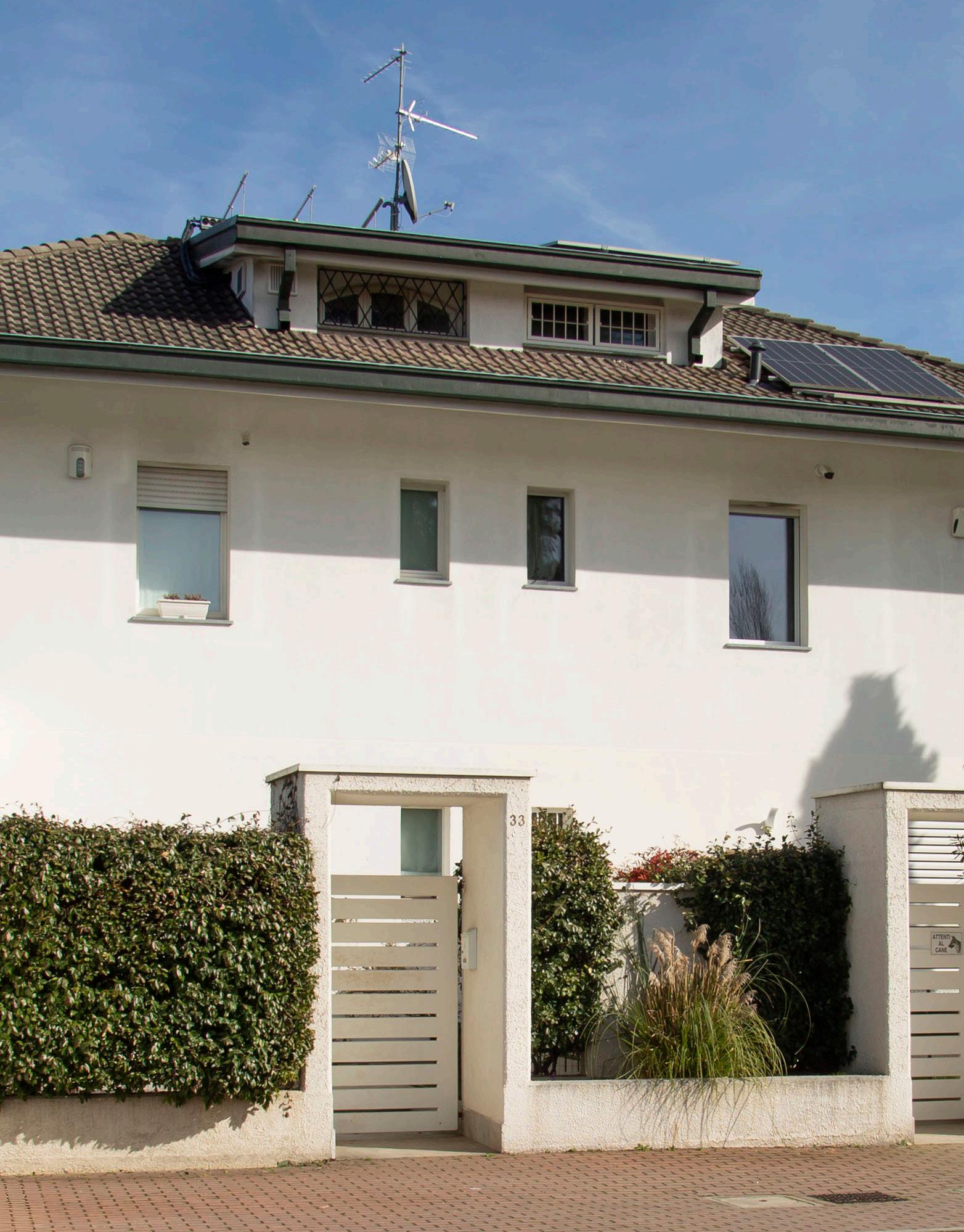 La villa si inserisce nel contesto residenziale di Arese con un profilo coerente: privacy, comfort e qualità costruttiva. La ristrutturazione 2023 e la dotazione tecnologica di livello — classe A3, riscaldamento a pavimento, pompa di calore caldo/ freddo, accumulo acqua e fotovoltaico da 6 kW — rendono l’abitazione efficiente e attuale, pronta per una vita moderna. Completano la proprietà due posti auto protetti da tettoia, con accesso tramite cancello automatizzato. Una soluzione per chi cerca finiture di pregio, prestazioni energetiche avanzate e una casa che semplifica il quotidiano, dentro e fuori.