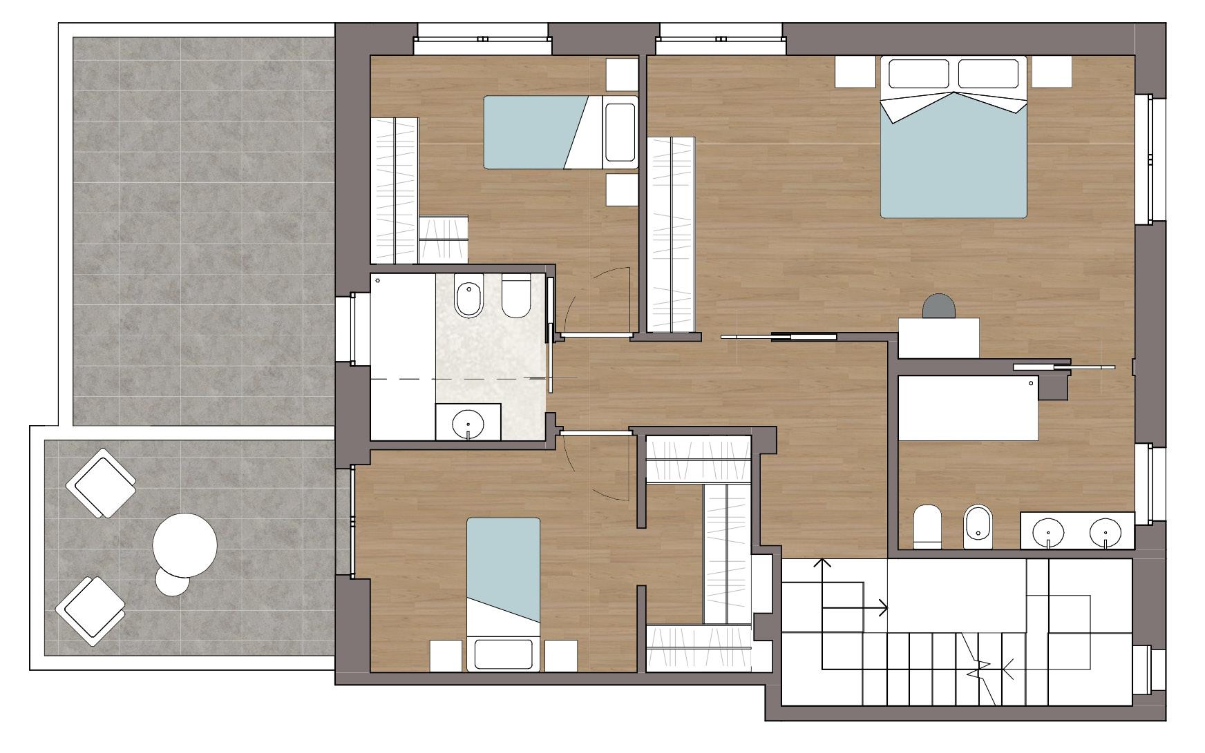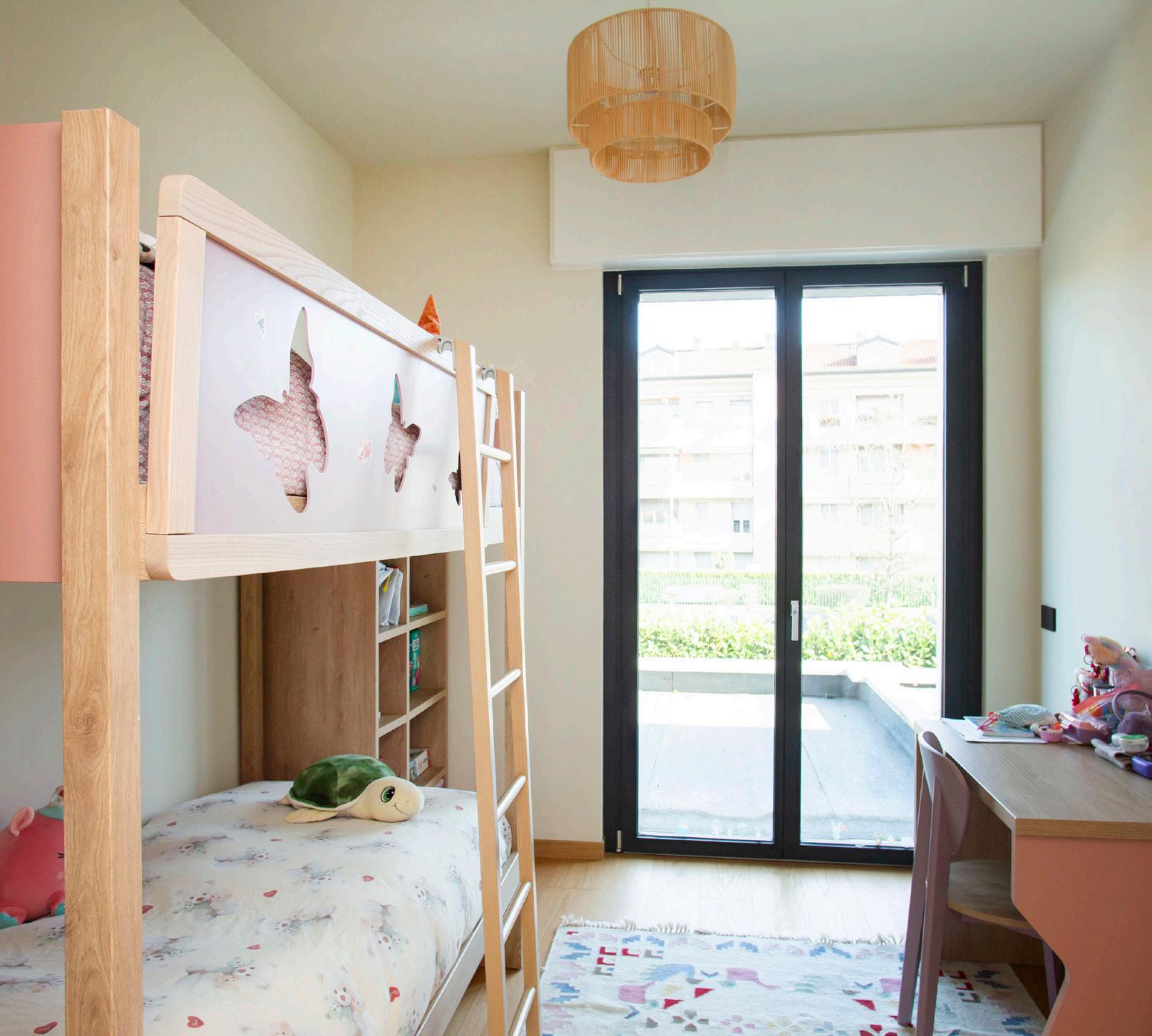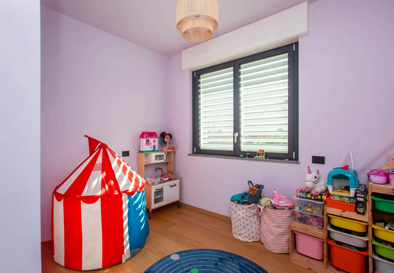 Le quattro camere da letto garantiscono una zona notte completa e ben dimensionata, adatta a una famiglia e alle diverse esigenze della vita quotidiana. Gli ambienti mantengono un taglio ordinato e confortevole, con finiture coerenti e una sensazione di cura continua. La distribuzione su due livelli permette di gestire privacy e ritmi diversi, creando spazi personali veri, senza sovrapposizioni.