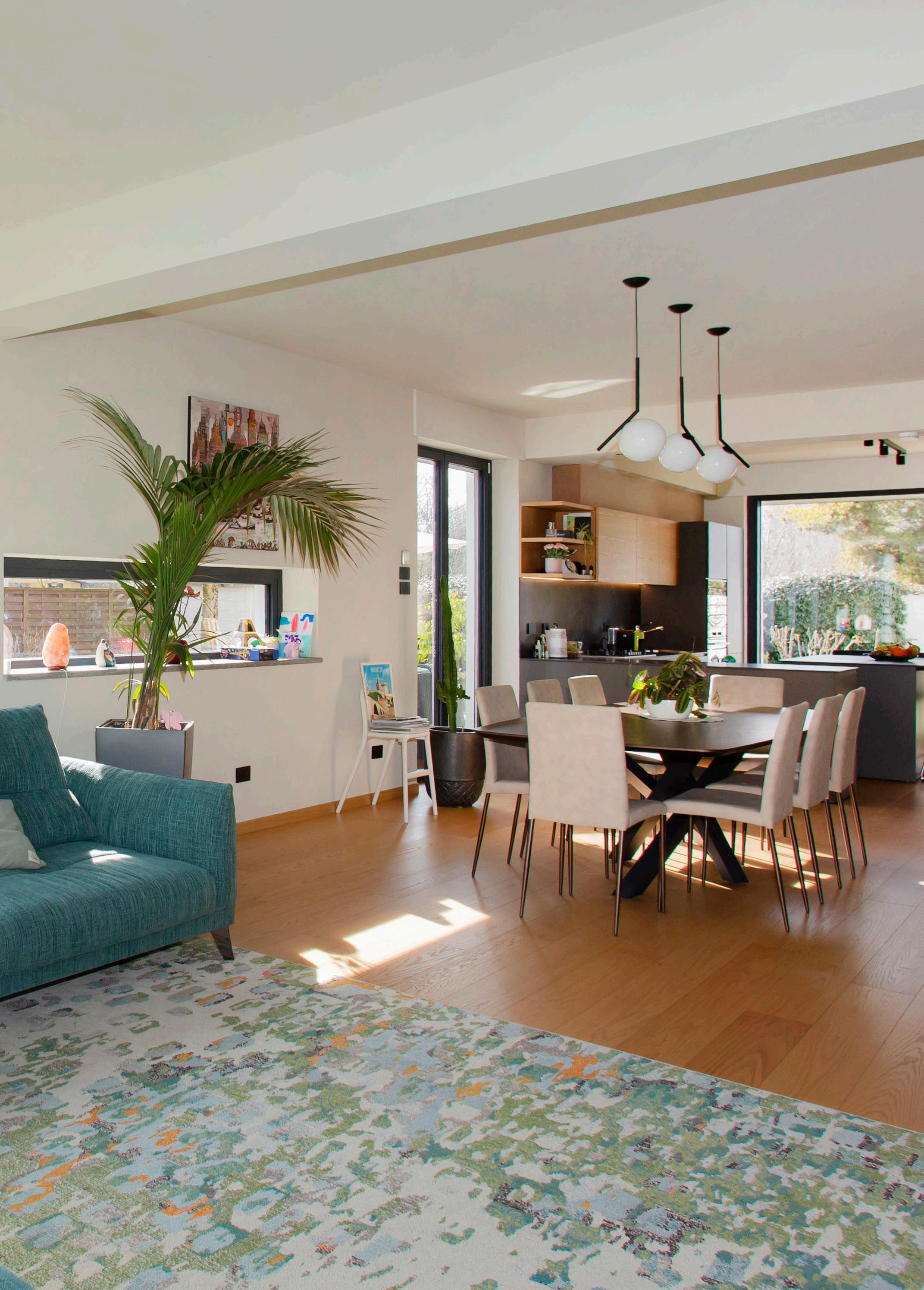 L’ingresso introduce subito il tono della villa: ordine, pulizia delle linee e una sensazione di casa “nuova”, curata nei dettagli. La distribuzione è razionale e leggibile, con passaggi fluidi tra zona giorno e aree più riservate. È un arrivo che non cerca effetti speciali, ma restituisce immediatamente solidità e comfort, lasciando che siano gli spazi e i materiali a parlare.