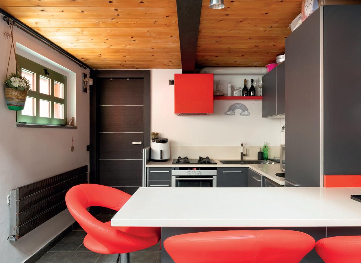 Al piano superiore c’è una camera matrimoniale con una comoda cabina armadio e un terrazzo privato sovrastante di circa 30mq. Al terrazzo si accede dall’appartamento tramite una scala interna in stile industriale.