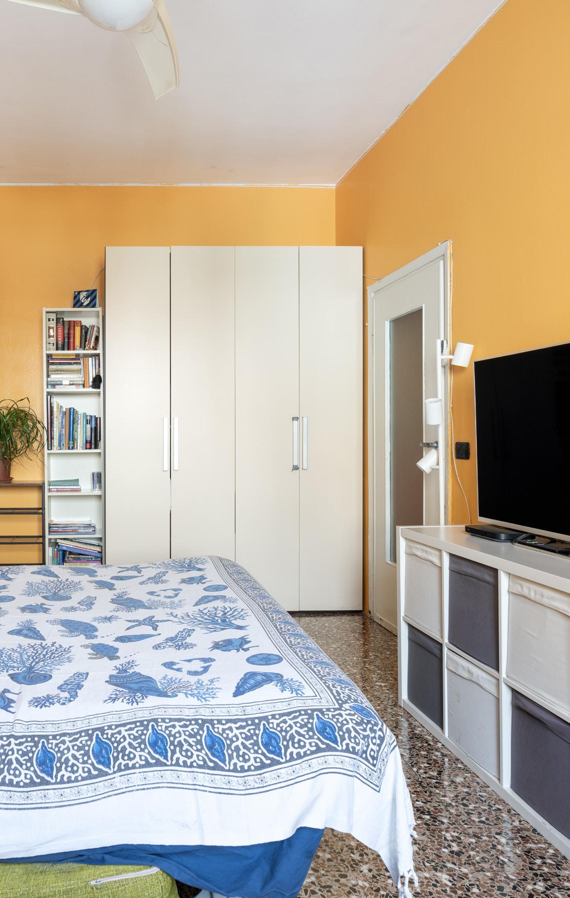 La camera da letto matrimoniale promette notti serene e rigeneranti. Le sue dimensioni generose e la sua disposizione funzionale offrono tutto lo spazio di cui avete bisogno per rilassarvi dopo una giornata nella vivace metropoli milanese. Un luogo di quiete e benessere, dove potrete lasciarvi avvolgere dal dolce abbraccio di morfeo.