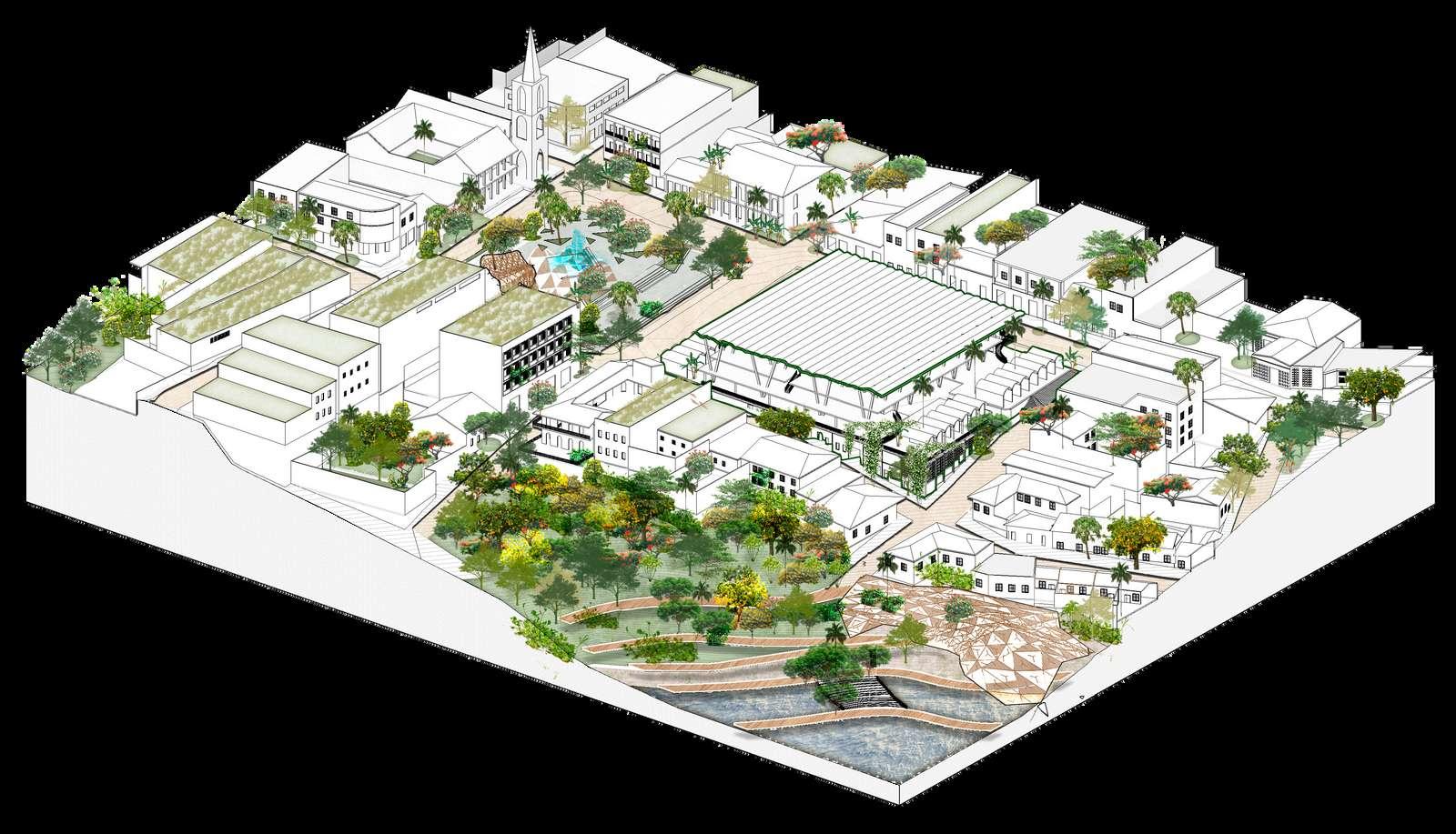 El puente férreo es pensado como un gran catalizador de vida silvestre y a la vez un punto en la movilidad urbana por medio de un tranvía, e ant guo puerto se refunc onal za en un museo de agua, con a nueva v s ón de pensar en un desarrollo sostenible en la navegación marítima del alto magdalena