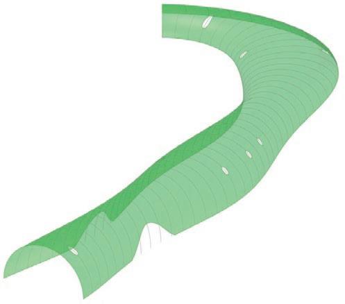 La superficie del puente, esta ha de nacer de una curva generatriz, idealmente tendremos absoluto control sobre como se materializa la superficie general de esta cubierta, se establecerán unos límites para garantizar consistencia (la apertura para el puente siempre estará en la zona más alta del proyecto, los balcones nunca intersecarán cerca del suelo o cerca de la cúspide etc...)